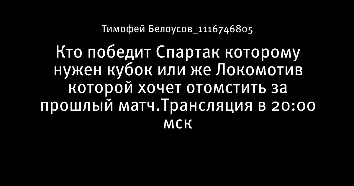 Кто победит Спартак которому нужен кубок или же Локомотив которой хочет отомстить за прошлый матч.Трансляция в 20:00 мск