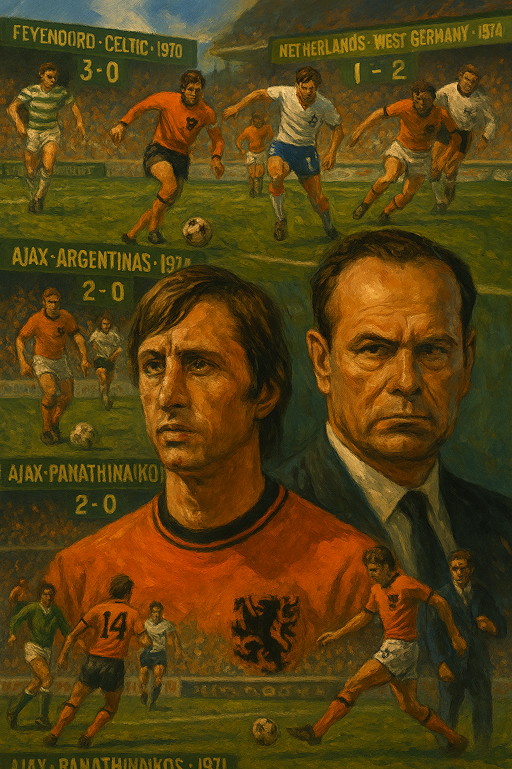 Ключевые подтверждения величия тотального футбола — это выступления сборной Нидерландов на ЧМ‑1974 и клубный цикл «Аякса» начала 1970‑х; в них чётко видны позиционная гибкость, ротации и коллективный прессинг, которые системно доминировали над традиционными схемами.