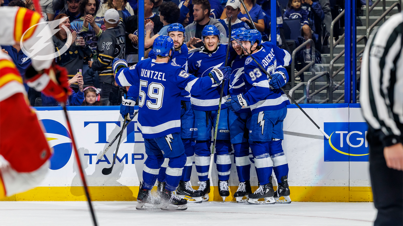 «Тампа-Бэй Лайтнинг»-»Калгари Флэймз» 5:1. Хозяева в первом периоде забросили 4 шайбы. Никита Кучеров и Брэндон Хагель набрали по 2 очка (1+1), Андрей Василевский отразил 32 броска. У гостей Ян Кузнецов отдал результативную передачу. «Молнии» выиграли 5 игру подряд.