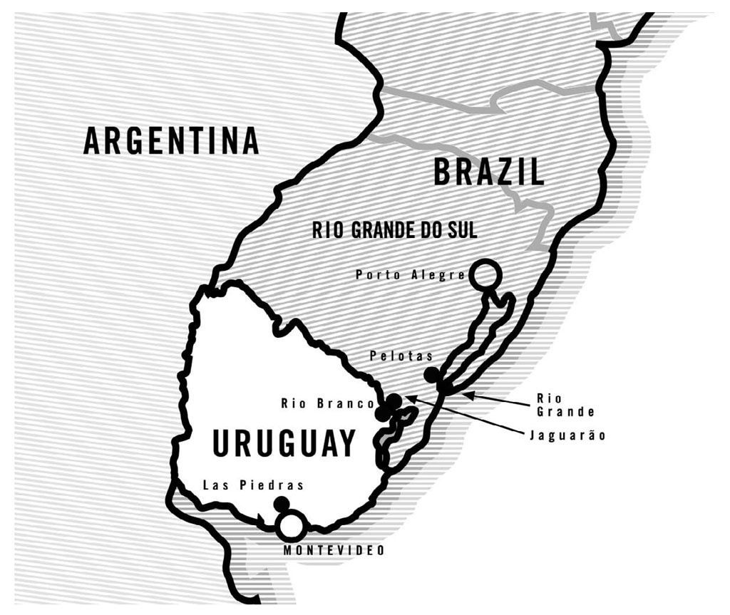 Мы прибываем в Жагуарао. Город состоит из хорошо сохранившихся площадей и мощеных улиц. Здесь чисто и уютно. Мы прибываем на место и переезжаем через международный мост Мауа в Рио-Бранко, город на уругвайской стороне. Алдир любит предаваться воспоминаниям. Несмотря на то, что он вырос в Жагуарао, его воспитала уругвайская культура. Первой футбольной командой, за которую он болел, был «Насьональ» из Монтевидео. «В детстве мы зависели почти исключительно от Уругвая. Жагуарао находится ближе к Пелотасу, чем к Монтевидео, но у Пелотаса не было таких ресурсов. Мы находились под контролем Уругвая». В небольшом магазине на прилавке лежит половина жареного поросенка. Алдиру нравится показывать, насколько варварскими являются уругвайцы, хотя это ироничный способ похвалить, насколько эта страна более цивилизованная, чем Бразилия. Его книги читают уругвайцы, а не бразильцы.
