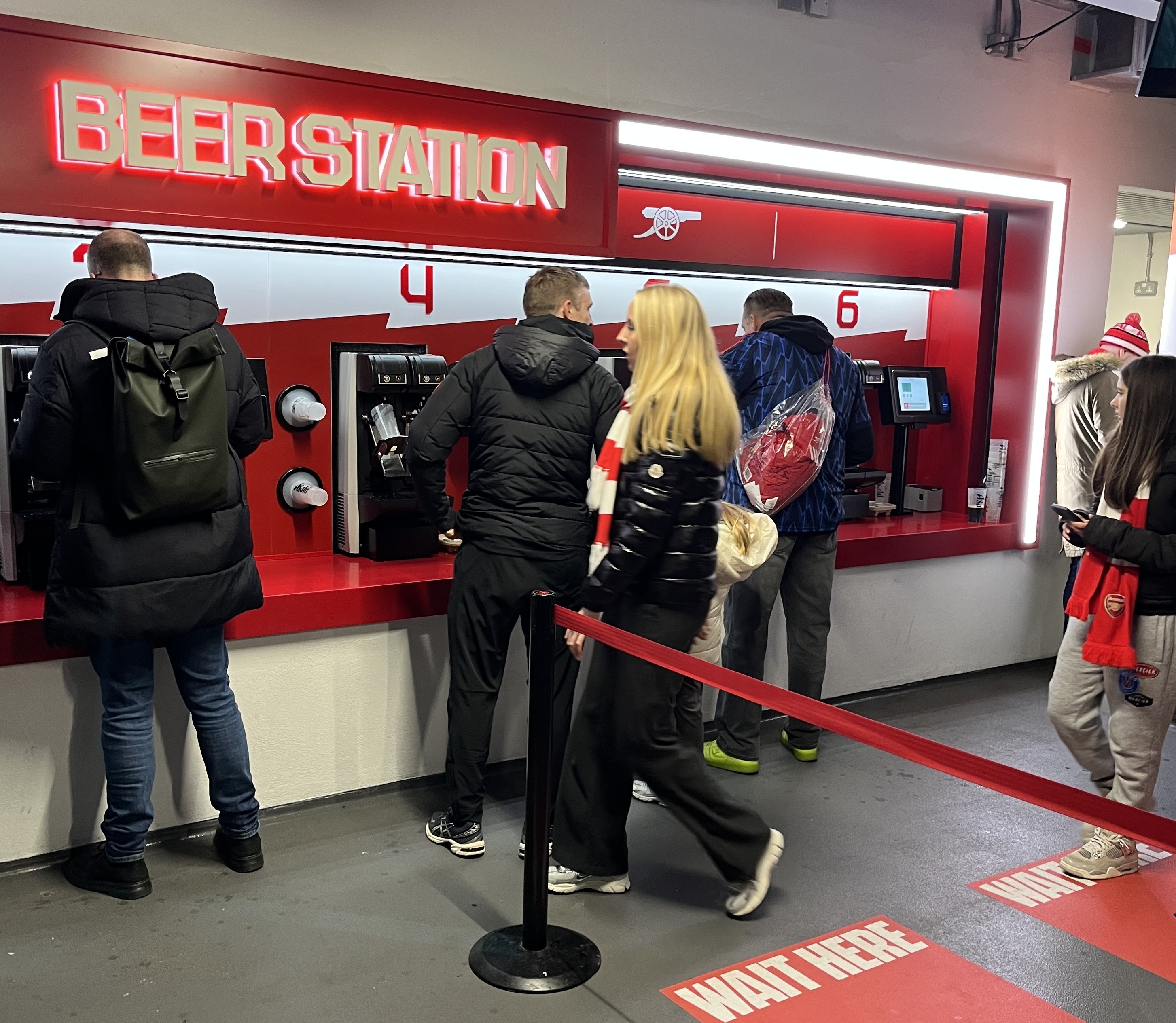 Что касается выпивки, на «Эмирейтс» в в этом сезоне новинка – автоматы по продаже пива. Это конечно не «Тоттенхэм» с собственной пивоварней на стадионе, но тоже прогресс – и меньше очередей за едой. Пиво в автоматах, между прочим, японское – заключено соглашение с компанией Asahi. Глобализация.