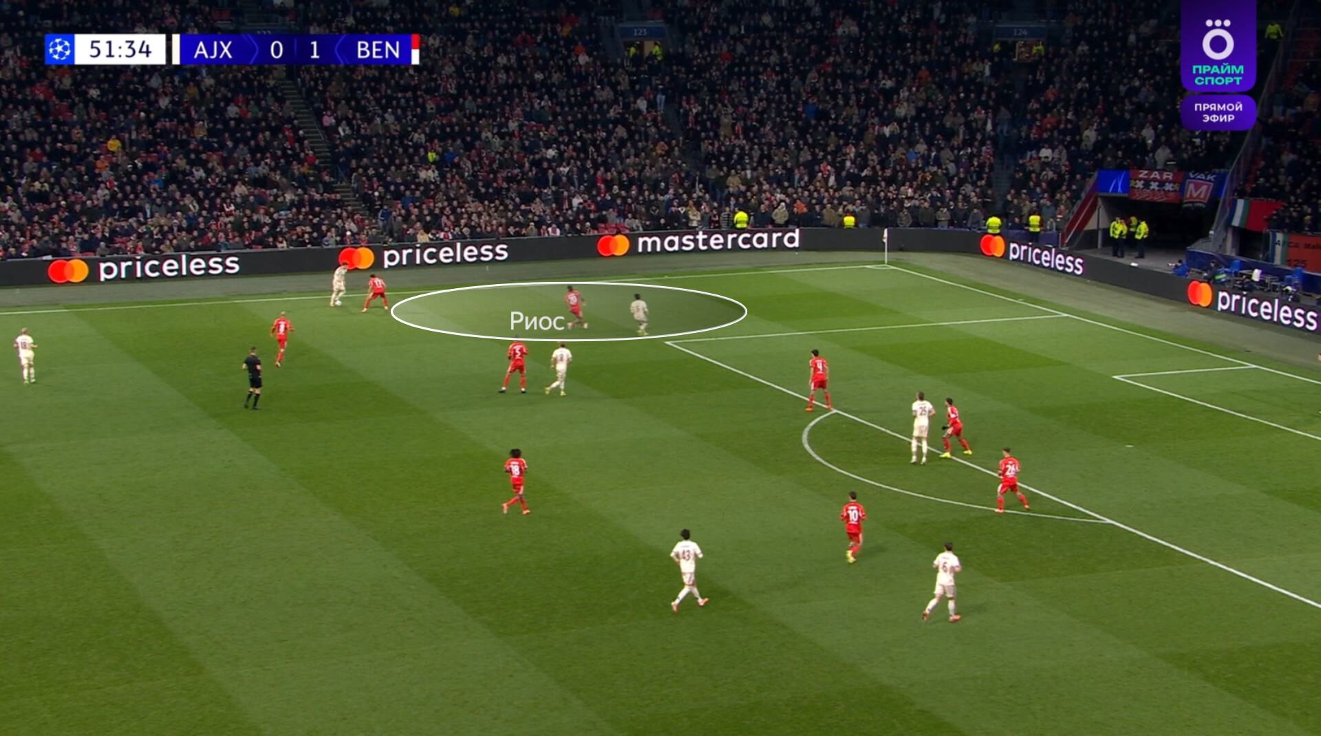 Оборонительный план сработал. «Аякс» при 62% владения лишь пять раз пробил из штрафной и даже уступил по действиям внутри нее (17-23). Было два неприятных эпизода с ударами Дэви Классена, но глобально «Бенфика» справилась.