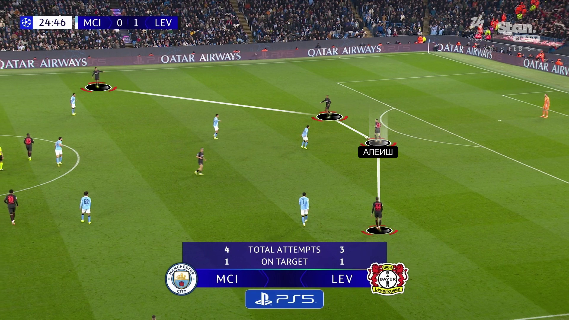 «Байер», изначально имея тройку защитников, использовал спуски к ним Гарсии – «Сити» тяжело было накрыть всех сразу. Особенно в экспериментальном составе: