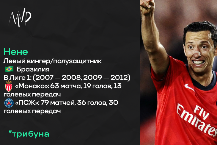 Вот с кем у вас ассоциируется «ПСЖ» периода, когда клуб только-только купили катарские богачи? Скрывать не буду, у меня — с этим персонажем. Бразилец Нене на родине начинал в «Палмейрасе» и «Сантосе». Затем был насыщенный отрезок в Испании, где полузащитник поиграл за «Мальорку», «Алавес» и «Сельту» (чуть позже, правда, был еще и «Эспаньол»). Но говорим мы здесь именно о Франции. Началось все летом 2007 года, когда «Монако» заплатил за молодого бразильца 6.00 миллионов Евро. Первый сезон в Лиге 1 вышел странным — бразилец лихо начал, сильно закончил, но в сумме набрал только четырнадцать очков по системе гол+пас. Сезон-2008/09 он провел в аренде в «Эспаньоле», а уже после этого стал одним из лучших футболистов «Монако» — блестящая первая половина первенства 2009/10, чуть менее успешная вторая. Итогом стали четырнадцать голов и четыре ассиста за весь розыгрыш Лиги 1. А дальше — Париж.