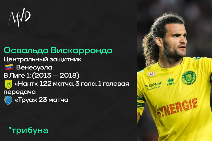 Ну и завершать мы будем, по английской традиции, достаточно «мемным» для определенной группы людей футболистом. Венесуэльский центральный защитник Освальдо Вискаррондо начинал в столичном «Каракасе», побывал в аргентинском «Росарио» и парагвайской «Олимпии». Затем еще были команды из Колумбии и Мексики, а также «Ланус». Именно после выступлений за последний на правах аренды из «Америки», Освальдо впервые в жизни отправился играть в Европу. Французский «Нант» заплатил за уже не очень молодого венесуэльца 600 тысяч Евро. И в стане «канареек» медлительный защитник сходу занял место в стартовом составе команды Мишеля Тер-Закаряна. К слову, за первые два полных сезона в Лиге 1 Вискаррондо суммарно пропустил лишь четыре матча.