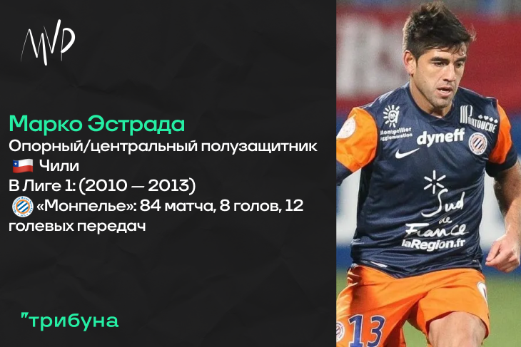 Вероятно, минимум по одному футболисту того «Монпелье» будет в каждой части о Лиге 1 в рамках данной рубрики. Полузащитник Марко Эстрада является воспитанником чилийского «Эвертона», но известность заработал уже выступая за местный гранд — «Универсидад де Чили». Единожды став Чемпионом там и активно вызываясь в национальную сборную, Марко обратил на себя внимание команд из Европы. Так, в 2010 году южноамериканского полузащитника, удалившегося в своем единственном матче на Чемпионате Мира в тот же год (против Испании), за 1.00 миллион Евро купил уже упомянутый французский «Монпелье». Конечно, этот переход был в тени другого трансфера — в то же окно в стан «палладинов» прибыл молодой нападающий из «Тура» Оливьер Жиру. Но здесь речь не о нем.