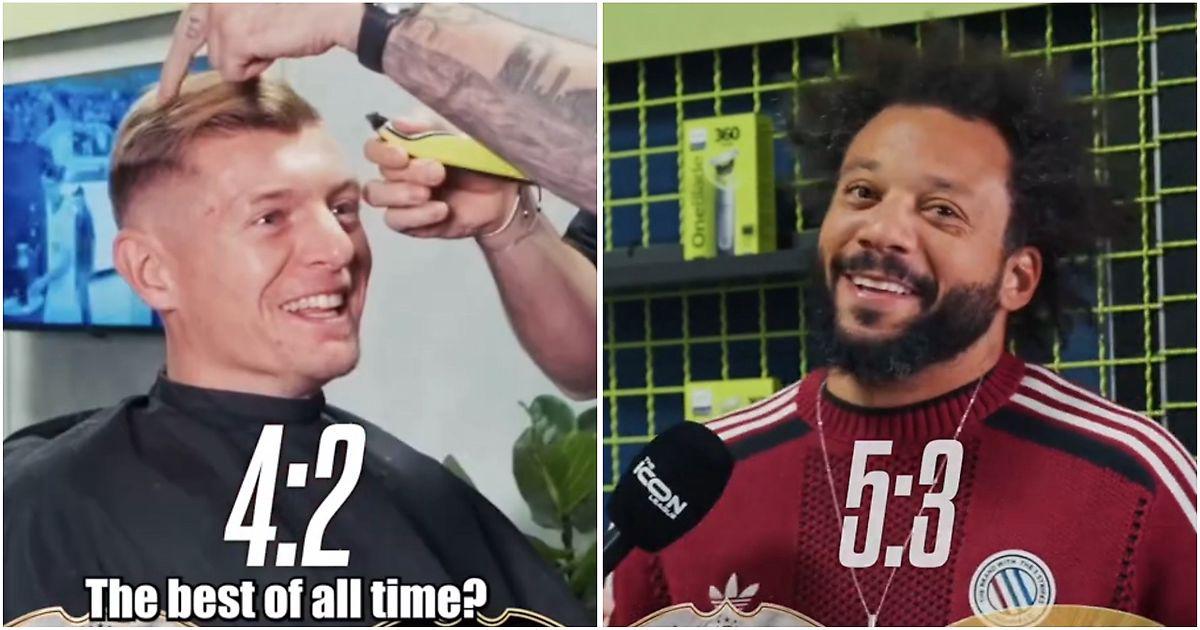Дальше стало сложнее. Ведущий назвал пару Марсело – Альваро Каррерас: сам бразилец выбрал молодого игрока, а Кроос предпочтение отдал экс-одноклубнику. Марсело при этом отметил, что лучшим в истории на своей позиции считает не себя, а Роберто Карлоса. А в битве Крооса с Джудом Беллингемом легенды с улыбкой единогласно выбрали англичанина.