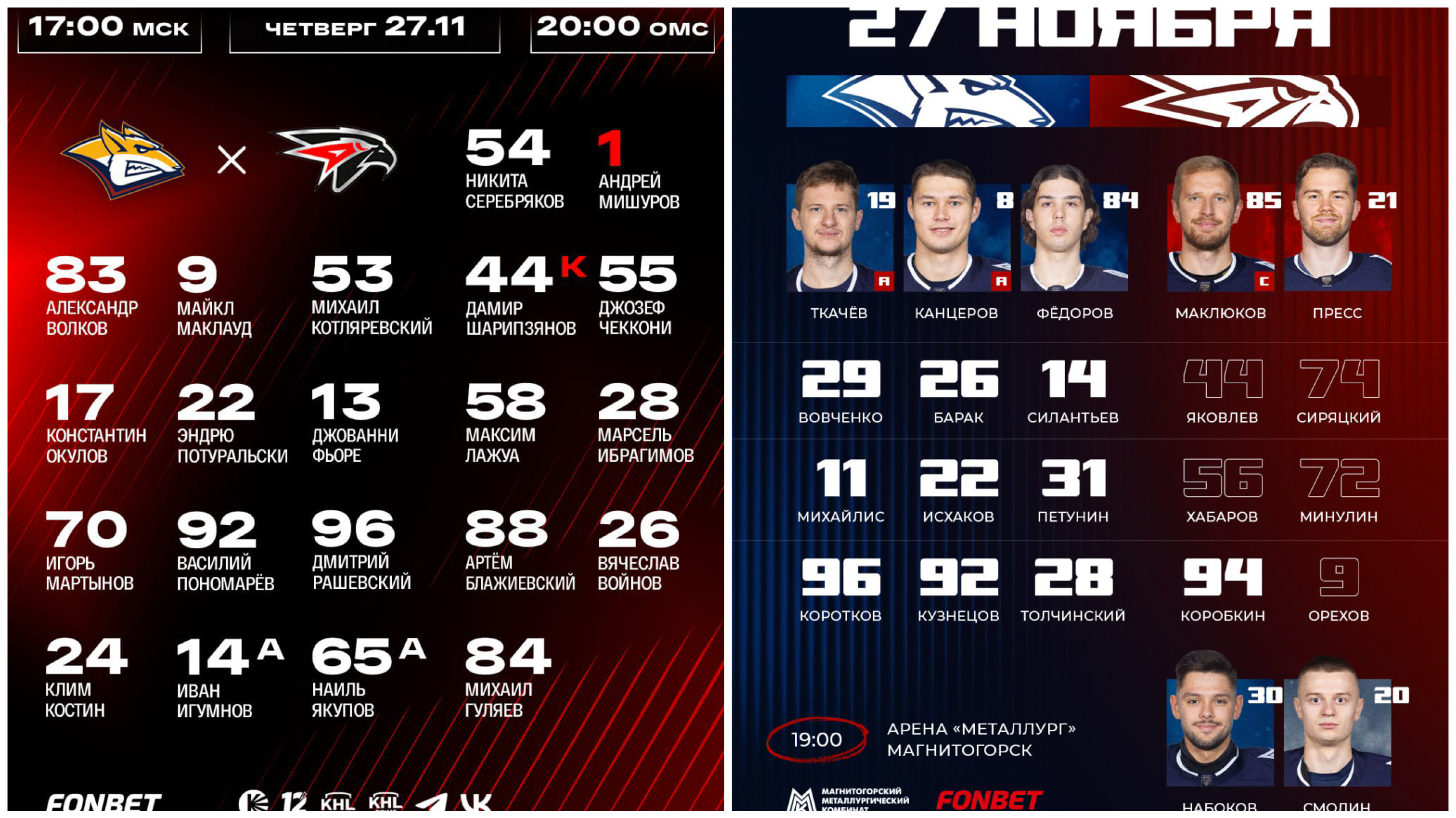 Фото: https://hawk.ru/media-content/photo/2965/ / https://metallurg.ru/media/photo/5185/ / https://video.khl.ru/events/2785042?partner=Z776khM
