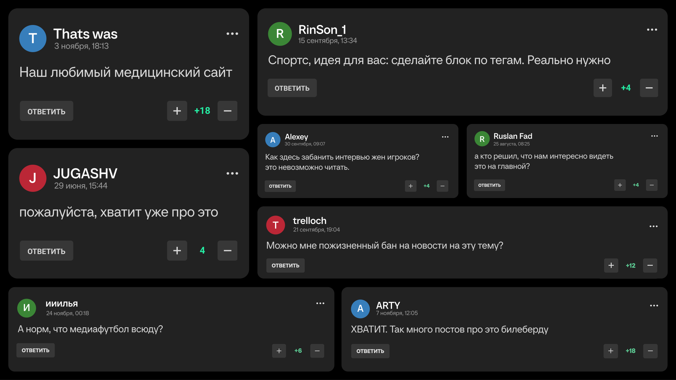 Еще в комментариях просят не постить новости с определенными героями, возмущаются текстами из определенного раздела или выбранными темами.