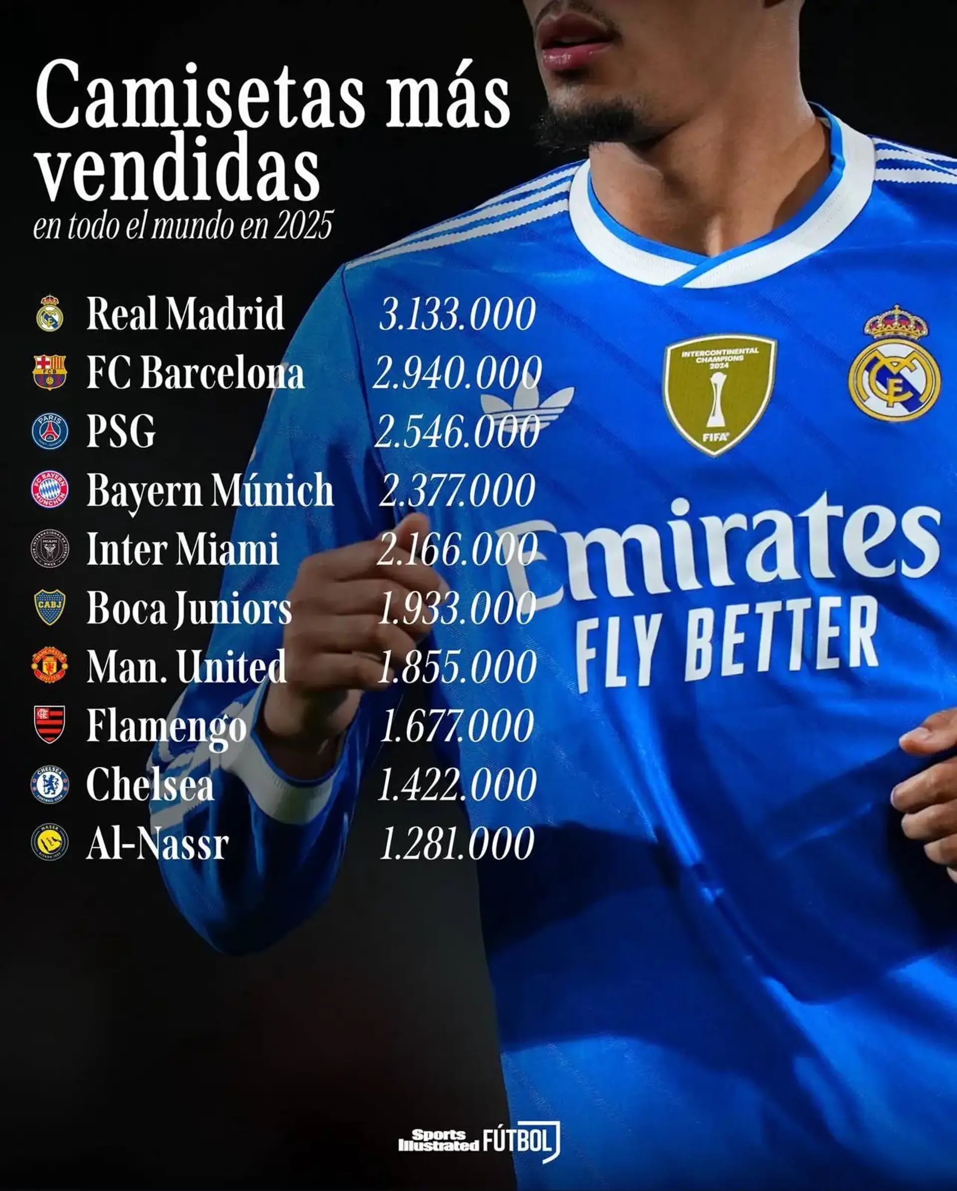 Опубликован свежий рейтинг клубов, которые продали больше всего футболок в 2025-м — и расклад получился жарким. По данным Euroméricas Sport Marketing, «Реал Мадрид» снова на вершине, подтверждая статус мирового монстра мерча.