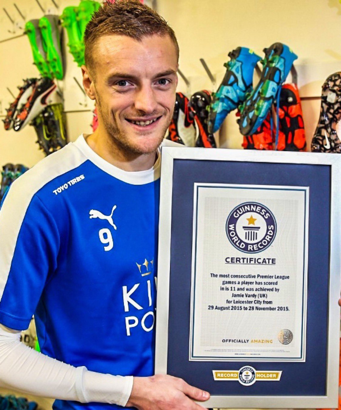 Речь про число матчей подряд, в которых форвард забивал хотя бы один мяч – одиннадцать. Эта серия началась 29 августа в игре против «Борнмута», а завершилась 28 ноября в матче с «Манчестер Юнайтед». За одиннадцать игр Варди забил тринадцать мячей, а побил достижение, которое было у Руда ван Нистелроя – десять.