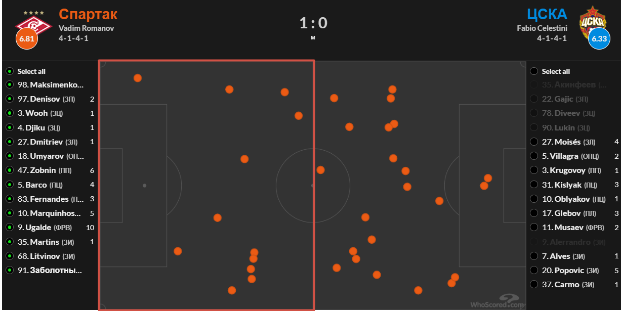 Количество потерь на своей половине в матче против армейцев было очень большое (12), и только благодаря нерасторопности игроков ЦСКА «Спартак» ушел с поля «сухим» (армейцы двухмесячной давности забили бы не меньше двух).