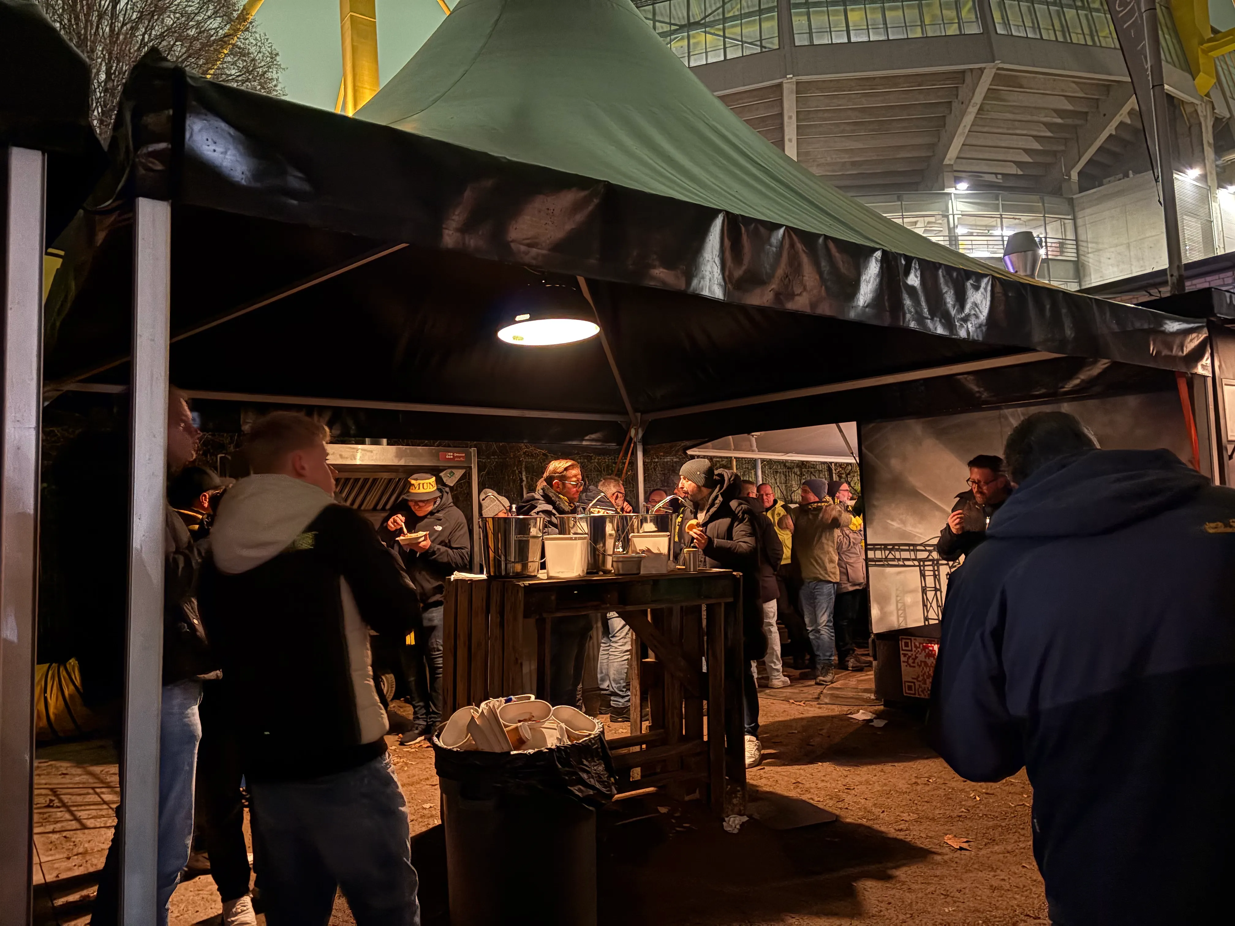 Некоторые палатки с едой выглядят очень аутентично. Есть полное ощущение, что госпожа Труда продает глинтвейн на матчах Боруссии не один десяток лет.