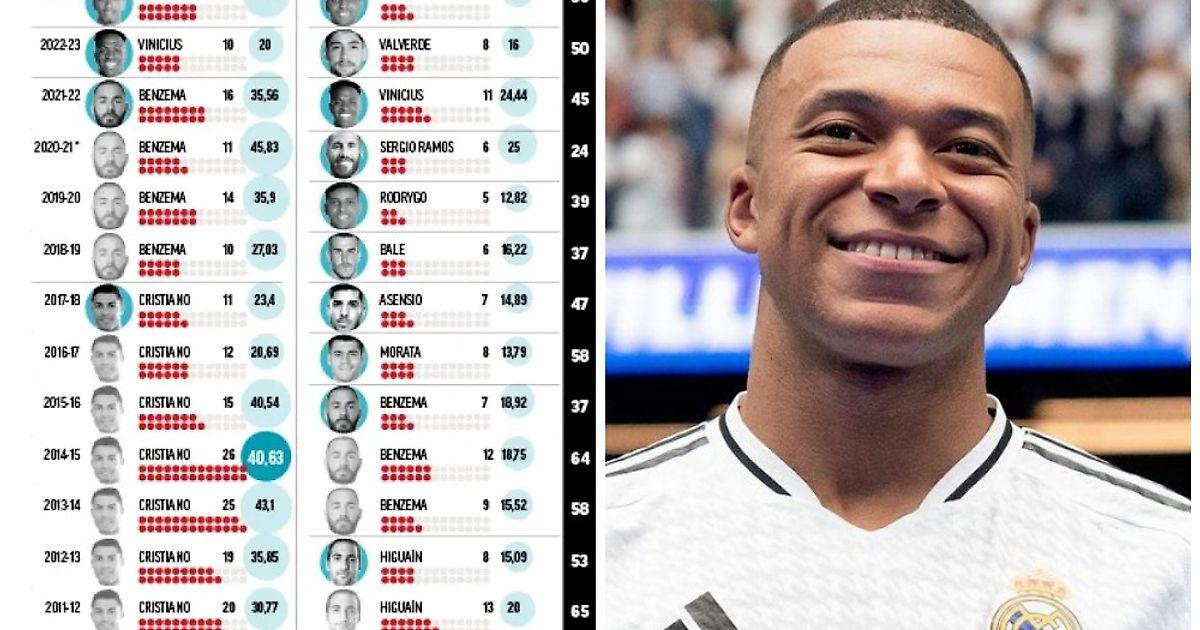 Испанское издание Marca приготовило текст и инфографику, подтверждающие, насколько сильно в этом сезоне «Мадрид» зависит от одного игрока – Килиана Мбаппе.