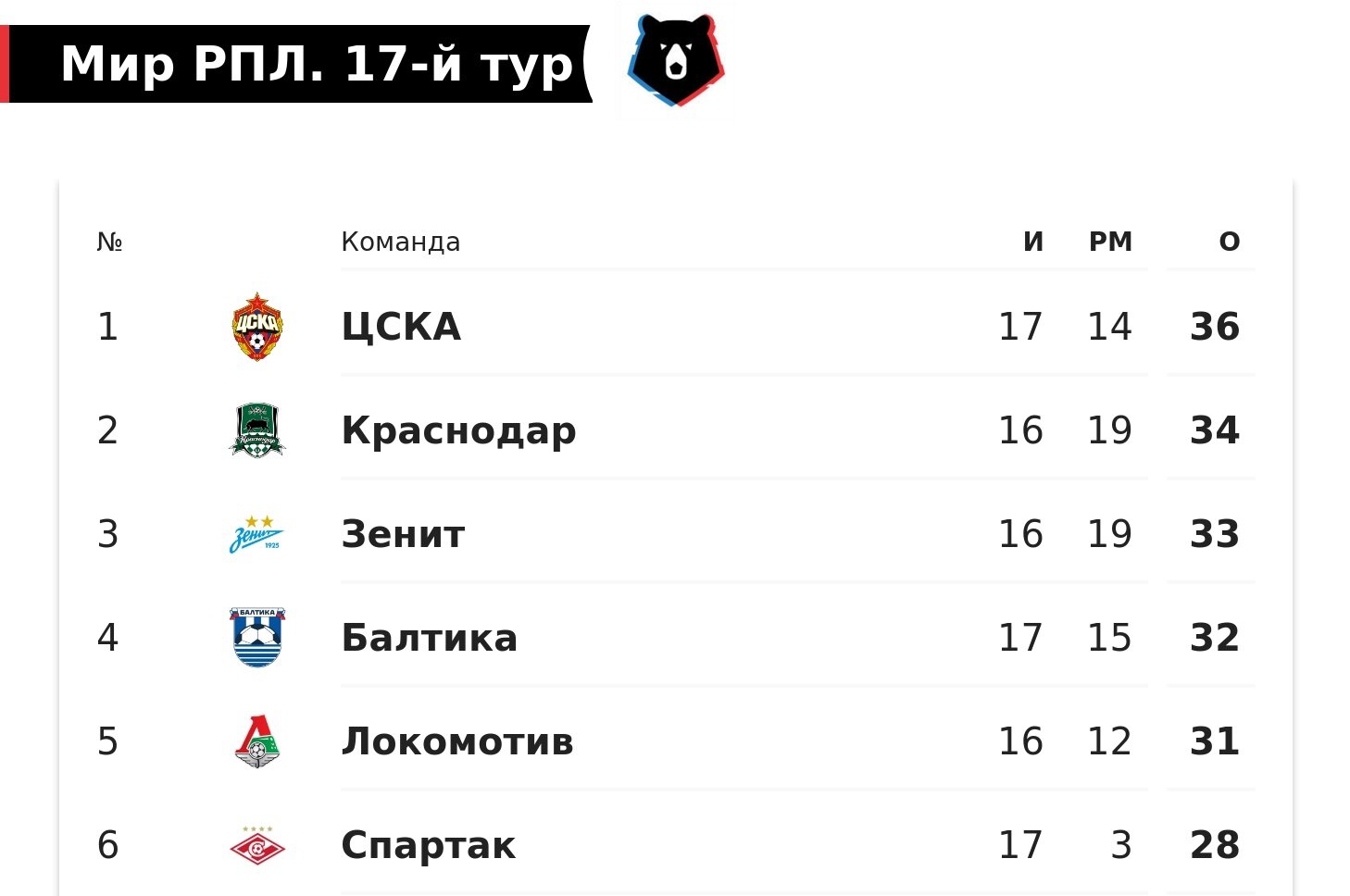 «Балтика» сейчас обгоняет «Локомотив» и очень близка к «Зениту». «Спартак» остался шестым.