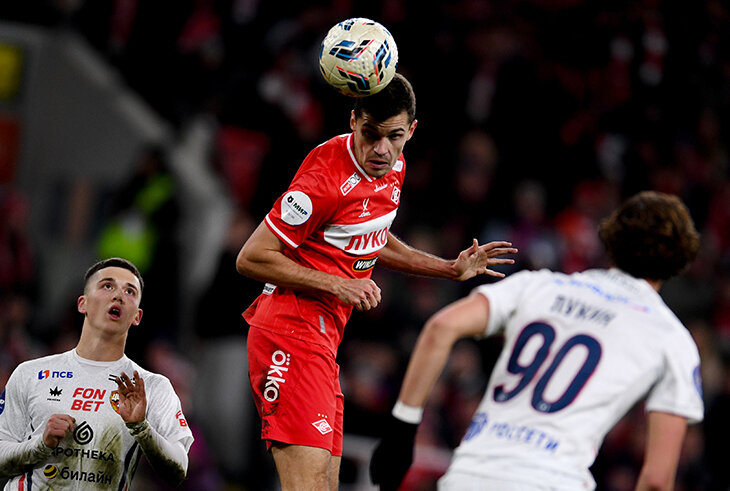 Это разрушило главный рабочий механизм «Спартака» в атаке. Жедсон постоянно действовал в оттяжке и садился низко, а в середине двигать мяч без него не получалось. Поэтому вперед все сводилось к забросам на Солари и Маркиньоса. Аргентинец-то хорошо цеплялся и постоянно убегал от Мингияна Бевеева, а бразилец оказался вообще не в своей стихии.