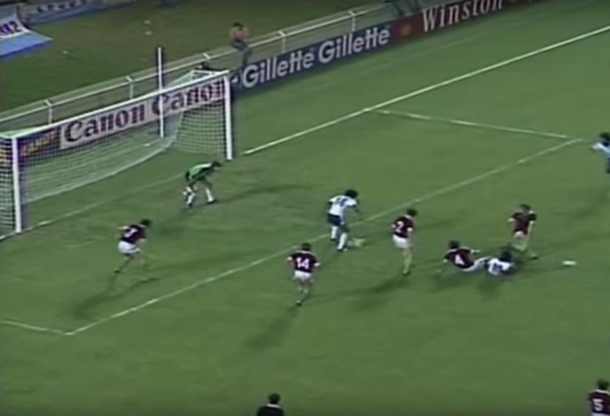 Мартош на 40-й минуте прямо перед линией штрафной в отчаянном подкате цепляет Эль Маго, совершая то, что сегодня можно было бы квалифицировать как фол последней надежды. Однако «знатная» судейская бригада (бахрейнец в роли главного и боковые в лице того, кто проигнорировал почти преднамеренное убийство Баттистона и того, кто помог испанцам сравнять счет в матче с югославами) так не считала.