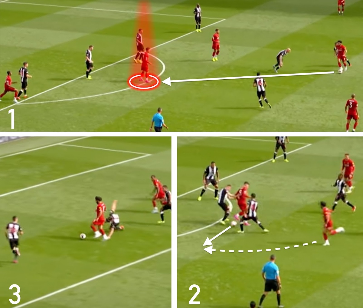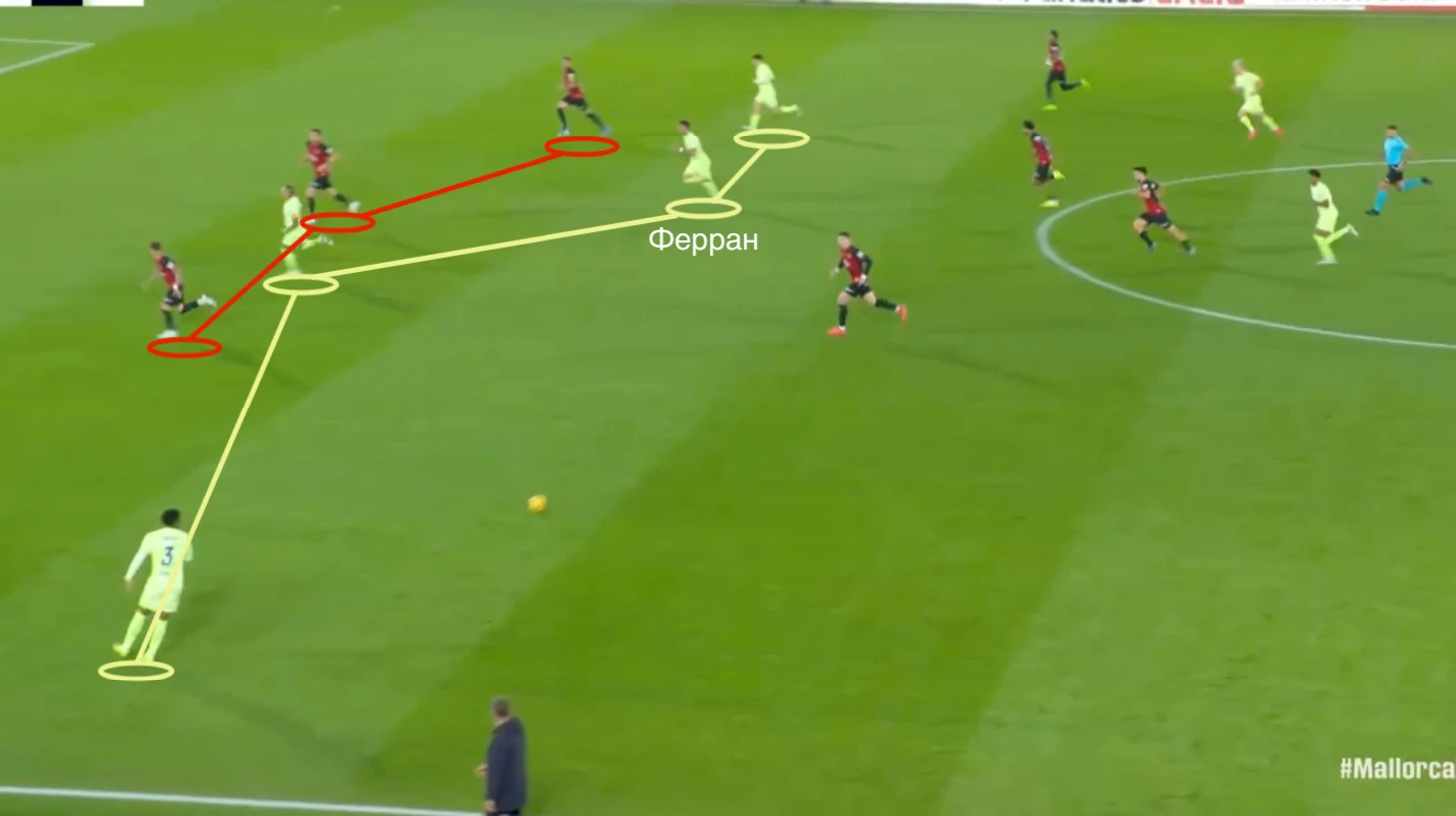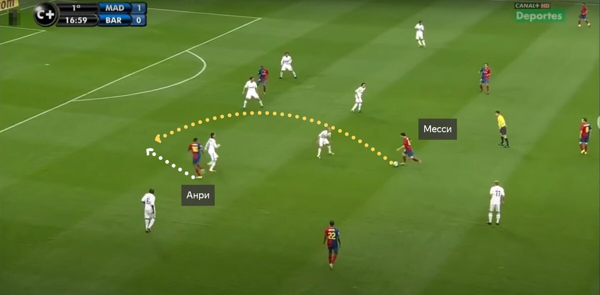 - Опорный полузащитник не успевает за ним, потому что тот стартует с более высокой позиции. В итоге «девятка» часто оказывается в свободном кармане, где может принять мяч, развернуться и оценить обстановку.
