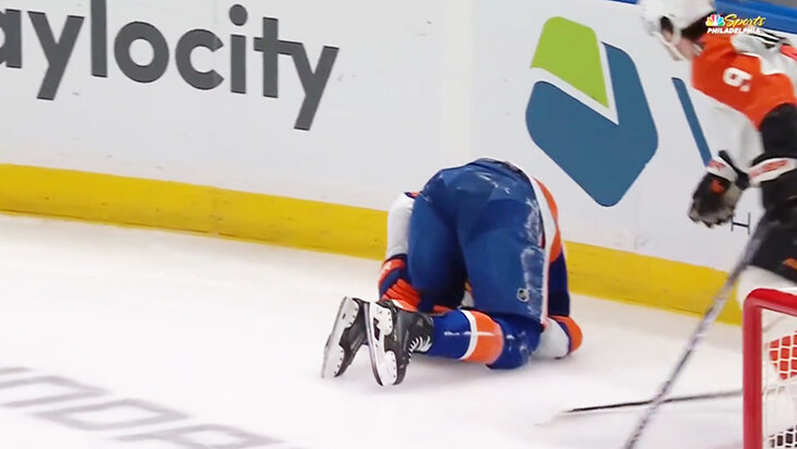 Нападающий «Айлендерс» Кайл Палмиери отдал голевую и начал камбэк в матче с «Филадельфией» с порванной крестообразной связкой левой ноги.