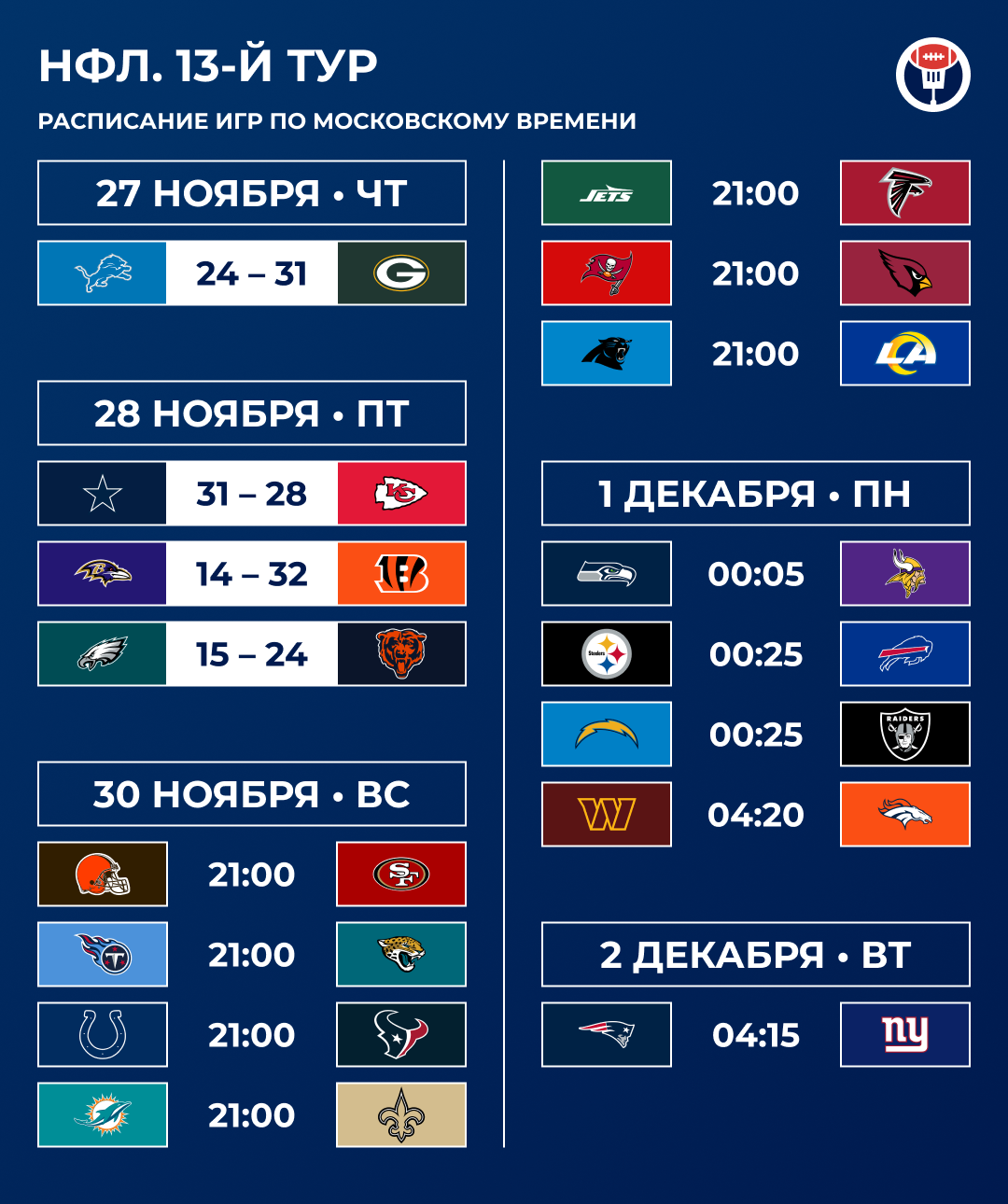 Битва за Юг АФК, Дарнолд против «Миннесоты» и нелетная погода в Кливленде. Что смотреть в 13-м туре НФЛ
