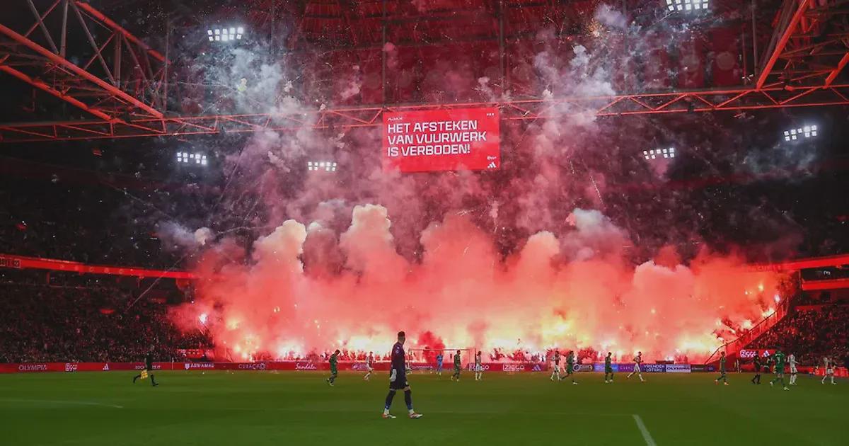 Судья Бас Нейхейс принял решение завершить встречу и отправить команды по домам. Это произошло после того, как болельщики хозяев поля дважды запустили фейерверк на Йохан Кройфф Арене.