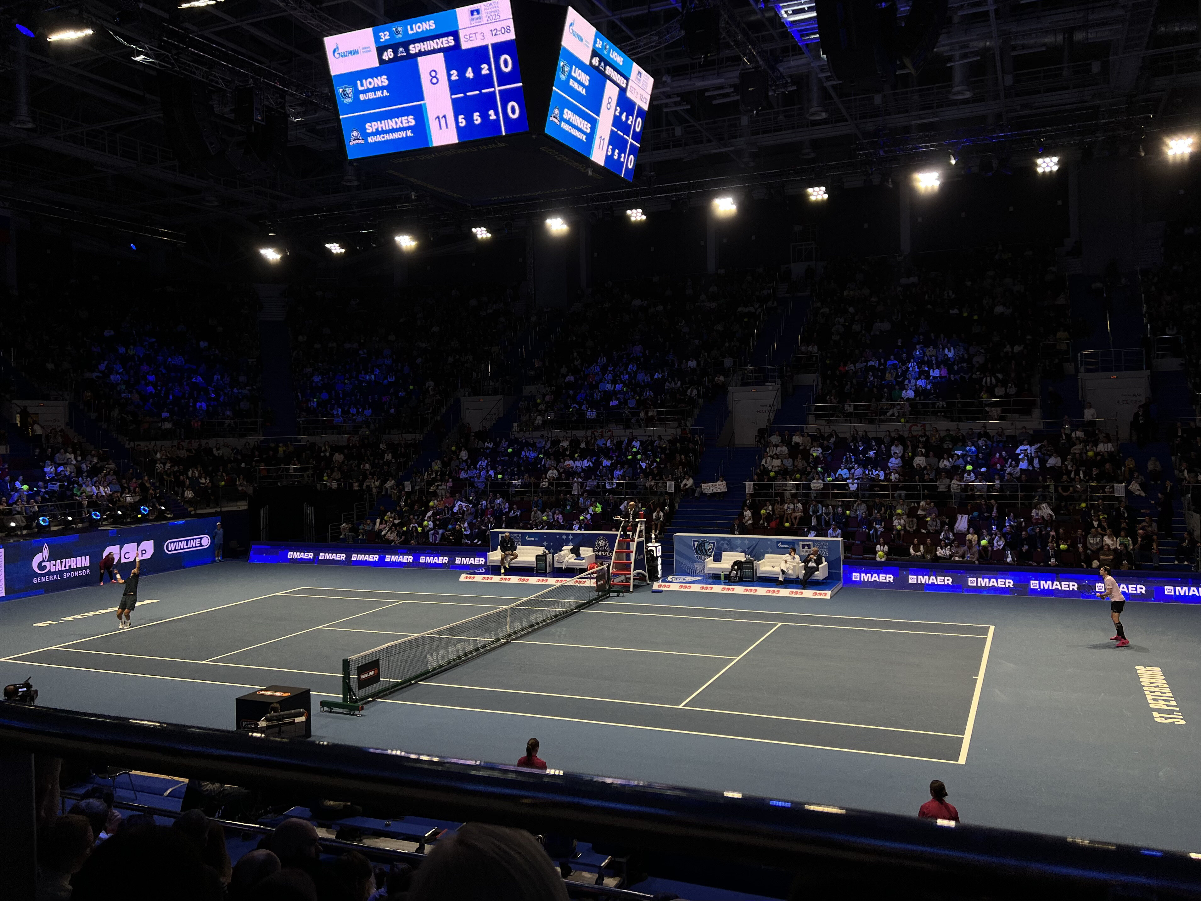 «Мест нет. В гардеробе мест нет». Это первые слова, которые я слышу, заходя на КСК Арену в Санкт-Петербурге в 15:30. Потом я вижу толпу своими глазами и чувствую, как она окружает меня, пока я проталкиваюсь с аккредитацией к пресс-центру. Уже на корте узнаю, что сегодня солдаут. Такого от выставочного теннисного турнира я не ожидала.