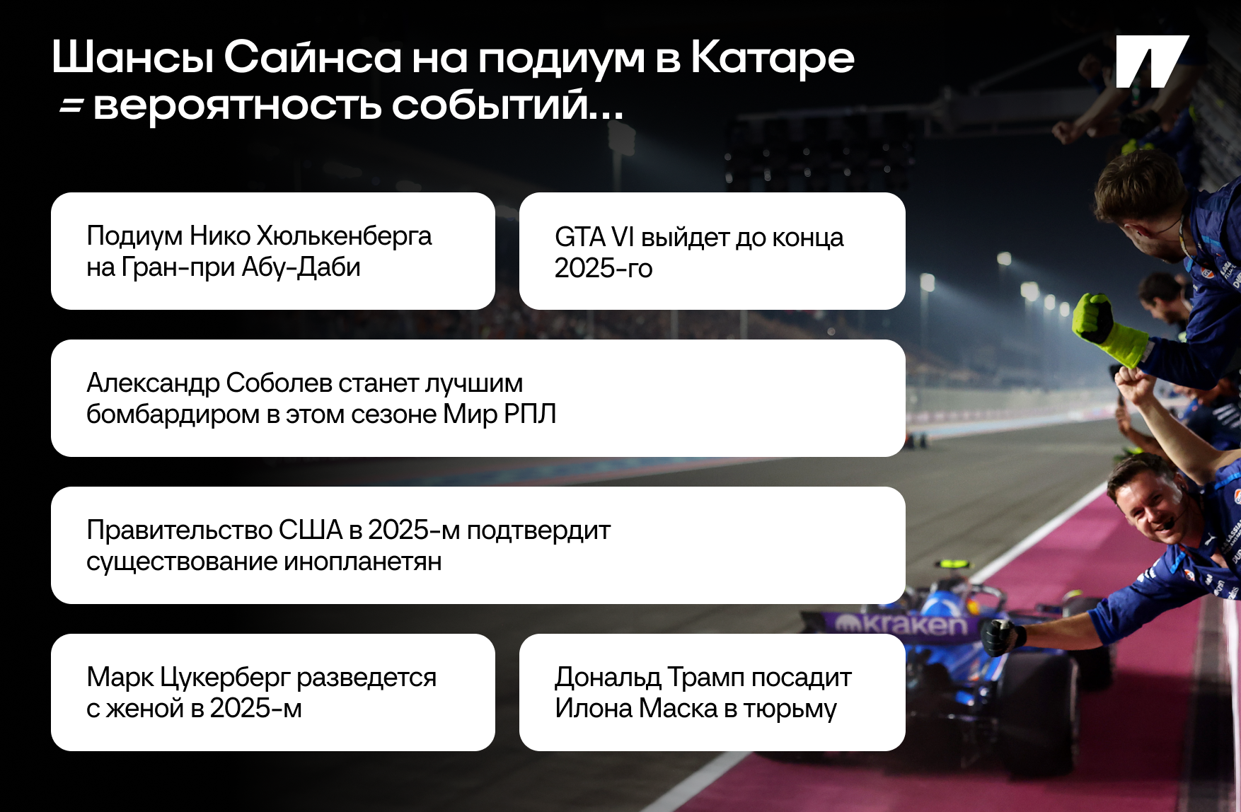 Чтобы понять, насколько маловероятным был подиум Сайнса, полезно сравнить его с другими событиями. Букмекеры принимают ставки на самые разные сюжеты – от спорта и политики до поп-культуры. И если посмотреть, что именно они оценивают в 1%, результат Сайнса в Катаре выглядит еще более удивительным.