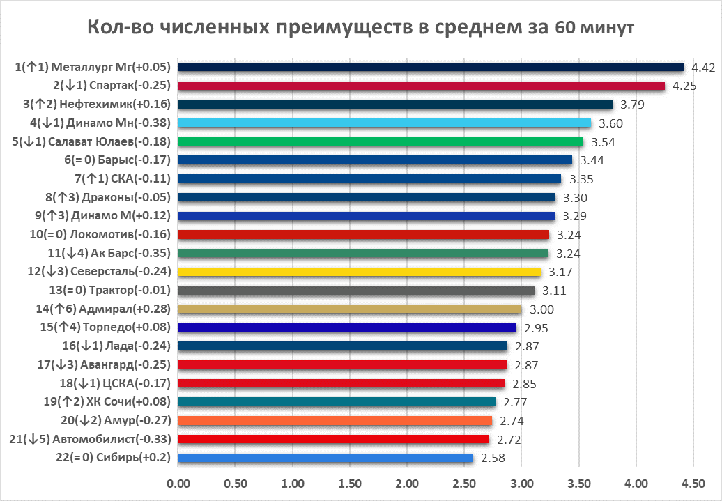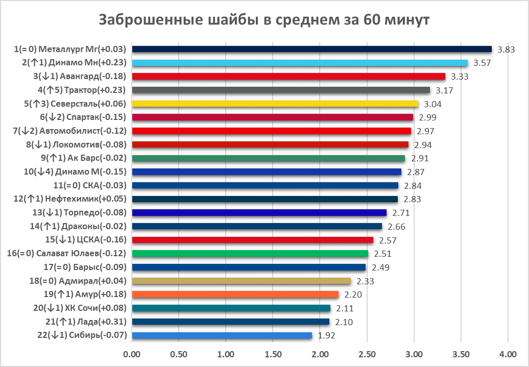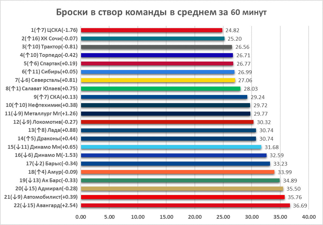 Показатели команд сравниваются по среднему значению. Поскольку в регулярном чемпионате продолжительность игр с учетом овертайма может варьироваться, все характеристики были определены в среднем относительно 60 минут игрового времени. В диаграммах около текущего положения команд указано изменение позиции по итогам ноября в сравнении с итогами октября. Также рядом с наименованием команд в указано изменение характеристики по итогам ноября в сравнением с показателем октября:
