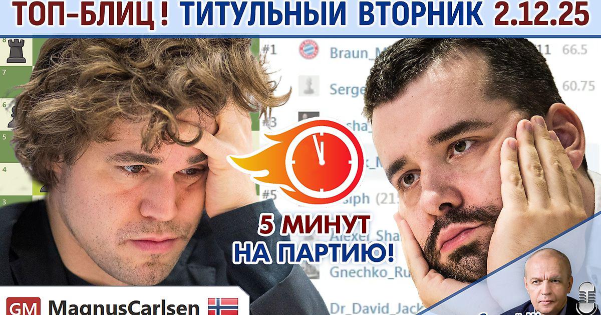 Топ-блиц! 💥 Титульный вторник 2.12.2025 + турнир ⏰ 19.00 🎤 Сергей Шипов ♕ Шахматы