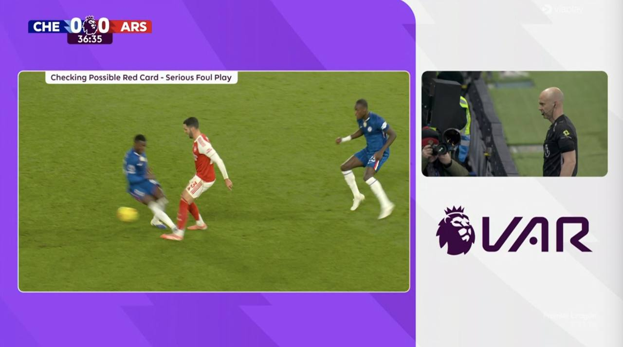 Главным лицом первого тайма был Энтони Тейлор, который с радостью раздавал желтые карточки. В первые 30 минут «Арсенал» получил 3 горчичника, все — оформлены за срыв быстрых атак. У «Челси» ЖК получил только Кукурелья. Правда, был еще один кандидат. Кайседо за это время успел сфолить, врезаться в спину Тимбера и акцентировано руками оттолкнуть Эзе. Свою карточку Мойсес получил только после того, как чуть не оторвал ногу Мерино. Тейлор в данном случае ограничился желтой, но ВАР исправил арбитра.