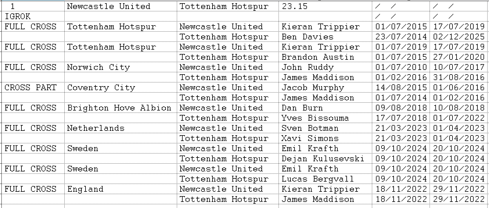 3.Соперники играли за один и тот же клуб (возможно в разное время- NO CROSS)