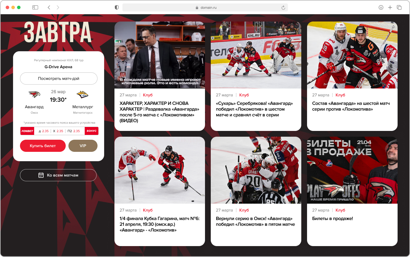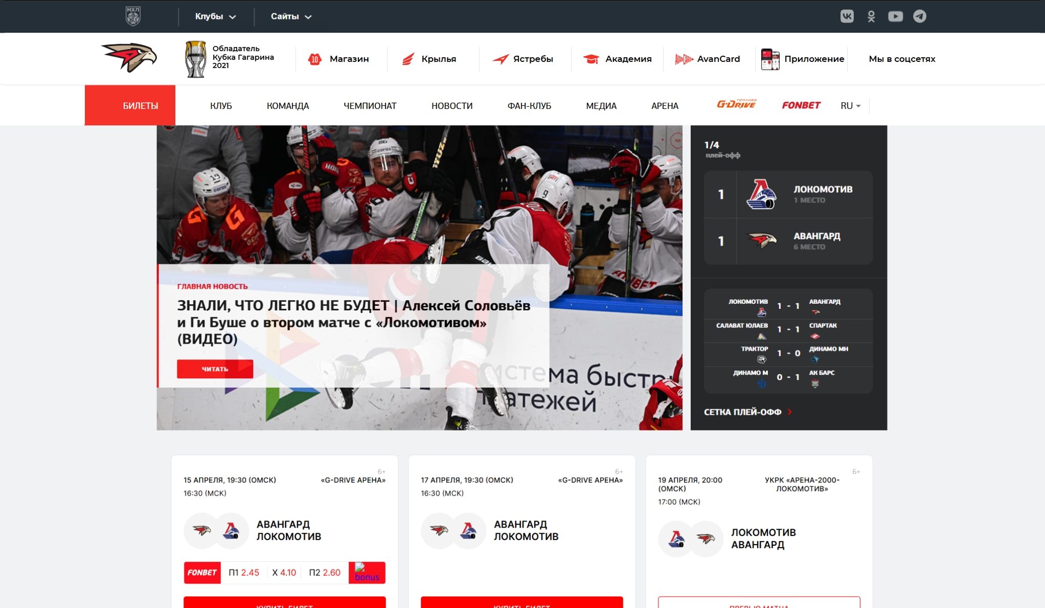 Новый сайт ХК «Авангард» стал современным, динамичным и ориентированным на пользователя.