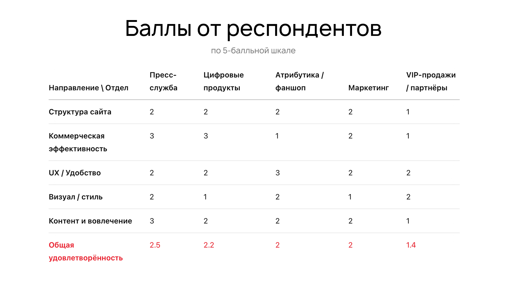 Поэтому, мы провели серию интервью с руководителями каждого подразделения, чтобы понять, какие задачи сайт решает для них и где текущая версия мешает.