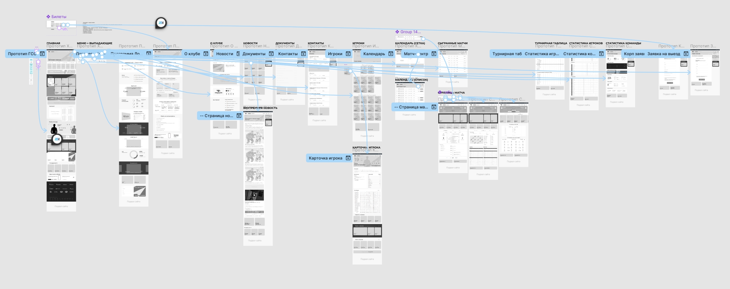 В таком же ключе создали прототипы ключевых внутренних страниц: карточки матчей, страницы игроков, новостной раздел, фан-шоп, академию и VIP-зоны.
