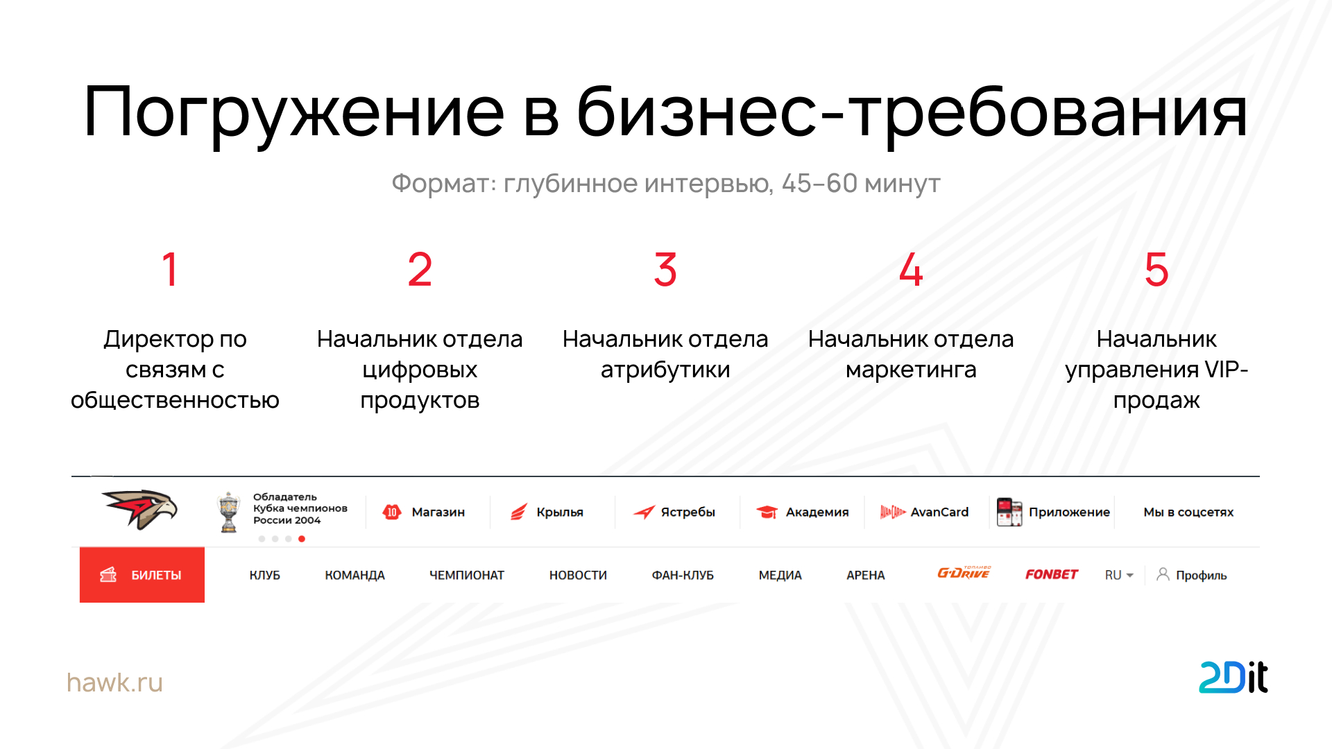 Мы начали с конкурентного анализа всех клубов КХЛ и даже вышли за пределы хоккея — смотрели на сайты крупных спортивных брендов, медиа и entertainment-проектов.