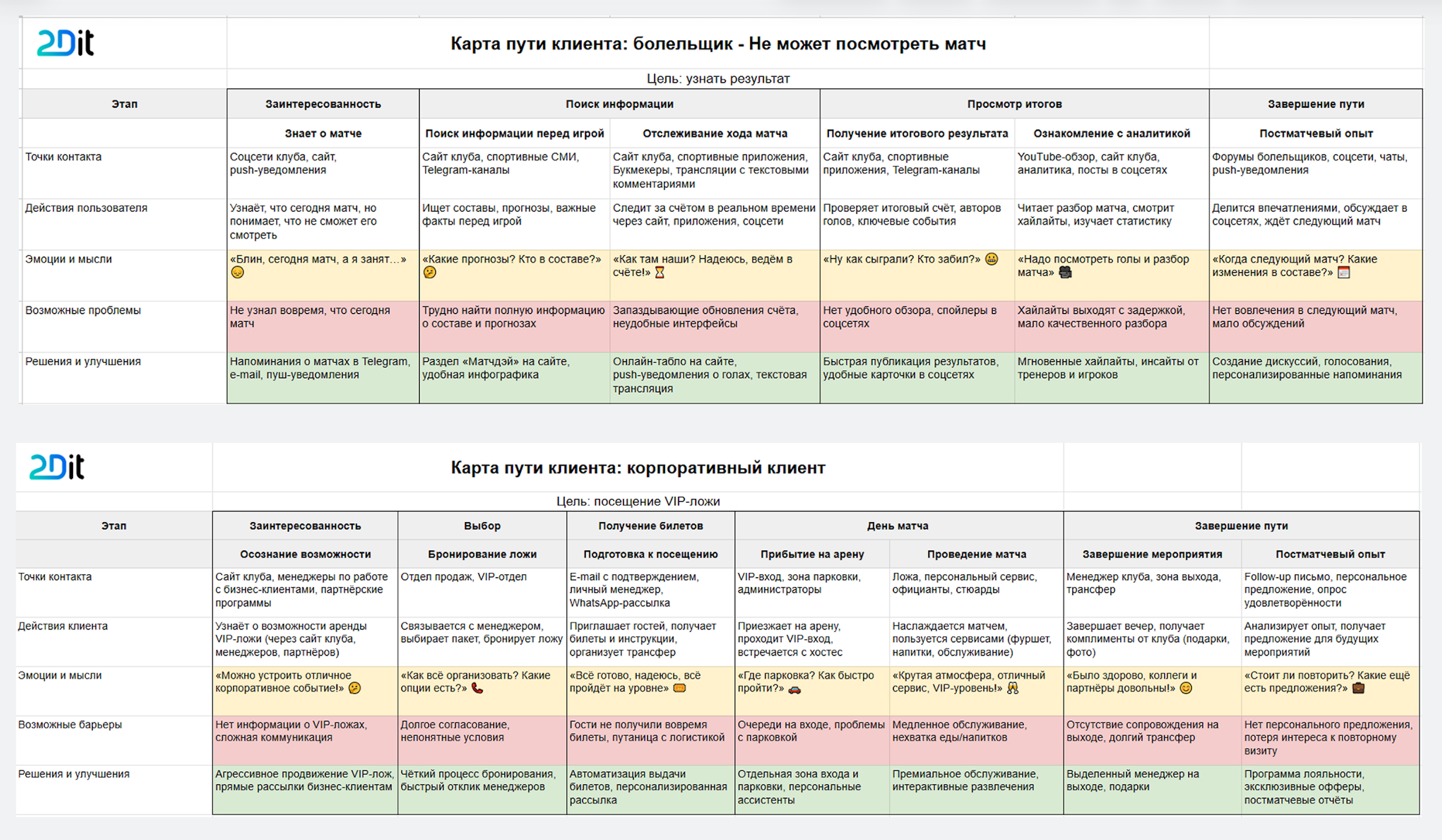 После чего были составлены Карты пути клиента (Customer Journey Map) — для 4 основных сценариев: