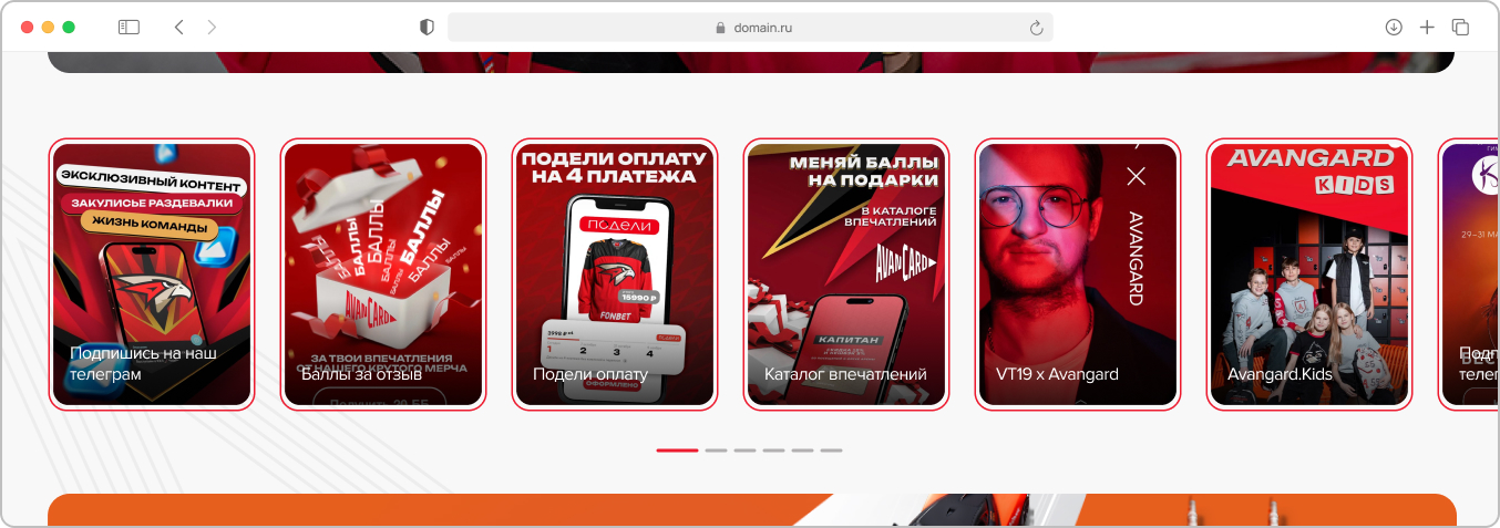 Вынесли коммерческие баннеры и предложения в аккуратную ленту с механикой сториз.