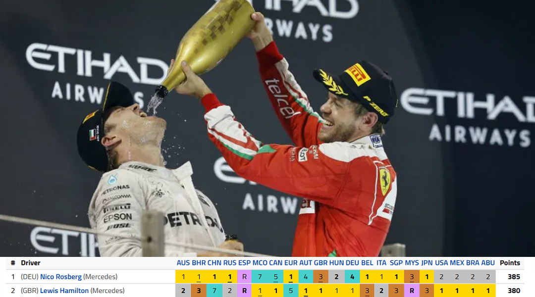 Этот финал стал яркой иллюстрацией двух разных подходов к борьбе за титул под колоссальным давлением: отчаянная, изобретательная, но в конечном счёте тщетная тактическая игра Хэмилтона против выдержки, дисциплины и безошибочности Росберга. В тот день последнее оказалось решающим.