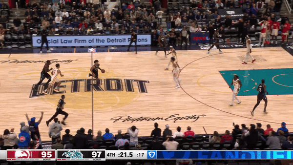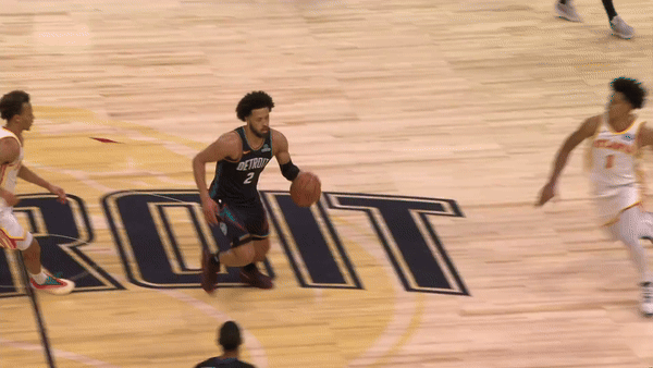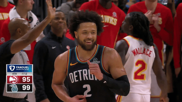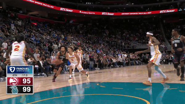 «Пистонс» уступали с разницей в 5 очков за 5 минут до конца, в клатче организовали рывок 11:0, но «Хоукс» ответили двумя точными трехочковыми – отличились Джейлен Джонсон и Никил Александер-Уокер. Счет стал равным – 95:95, после чего за Дело взялся Каннингем. Сначала он реализовал средний бросок через Дайсона Дэниэлса, а затем поставил точку в матче, соорудив один из главных хайлайтов сезона в клатче.