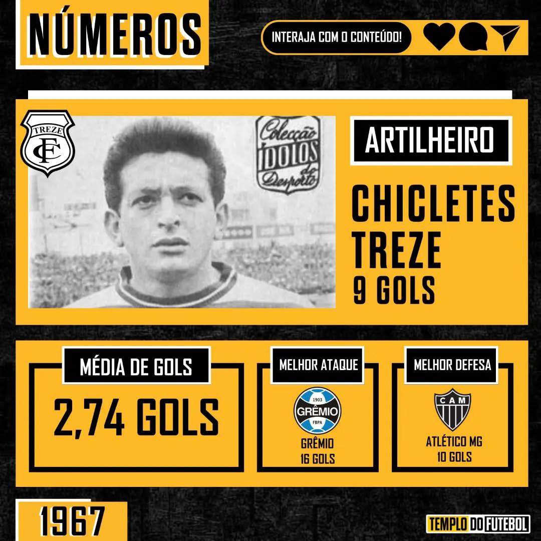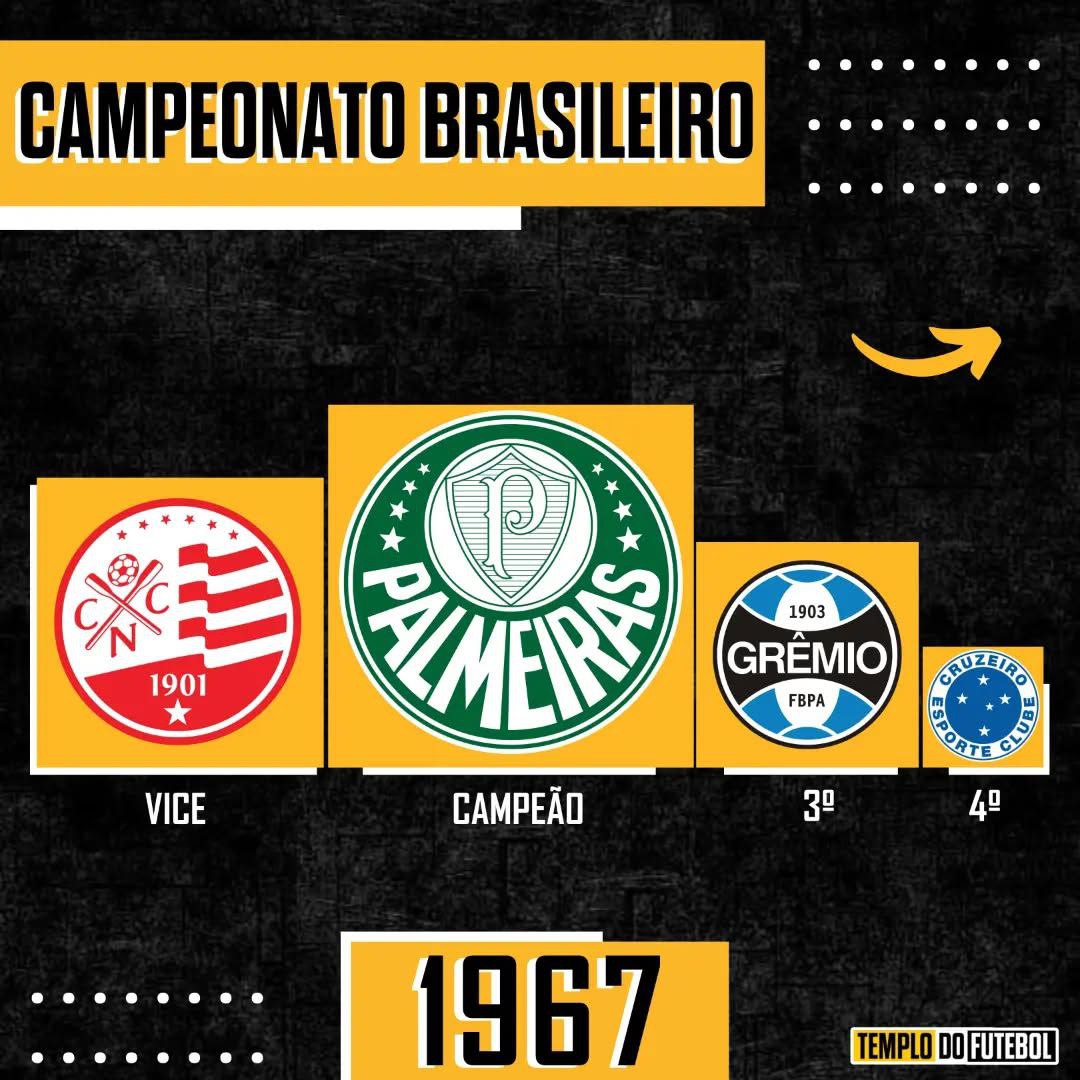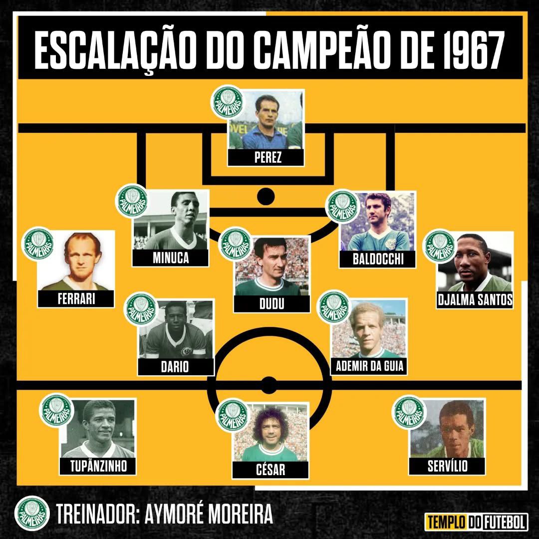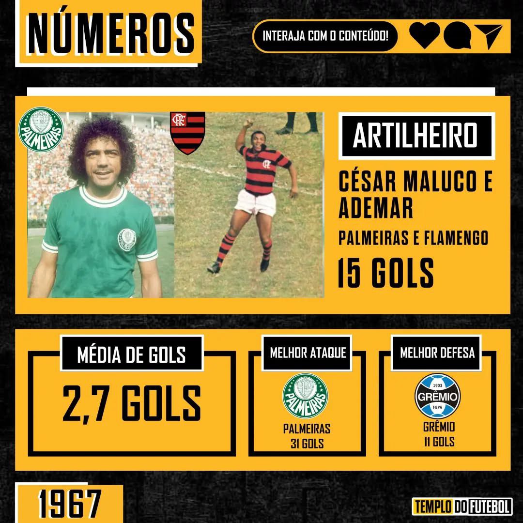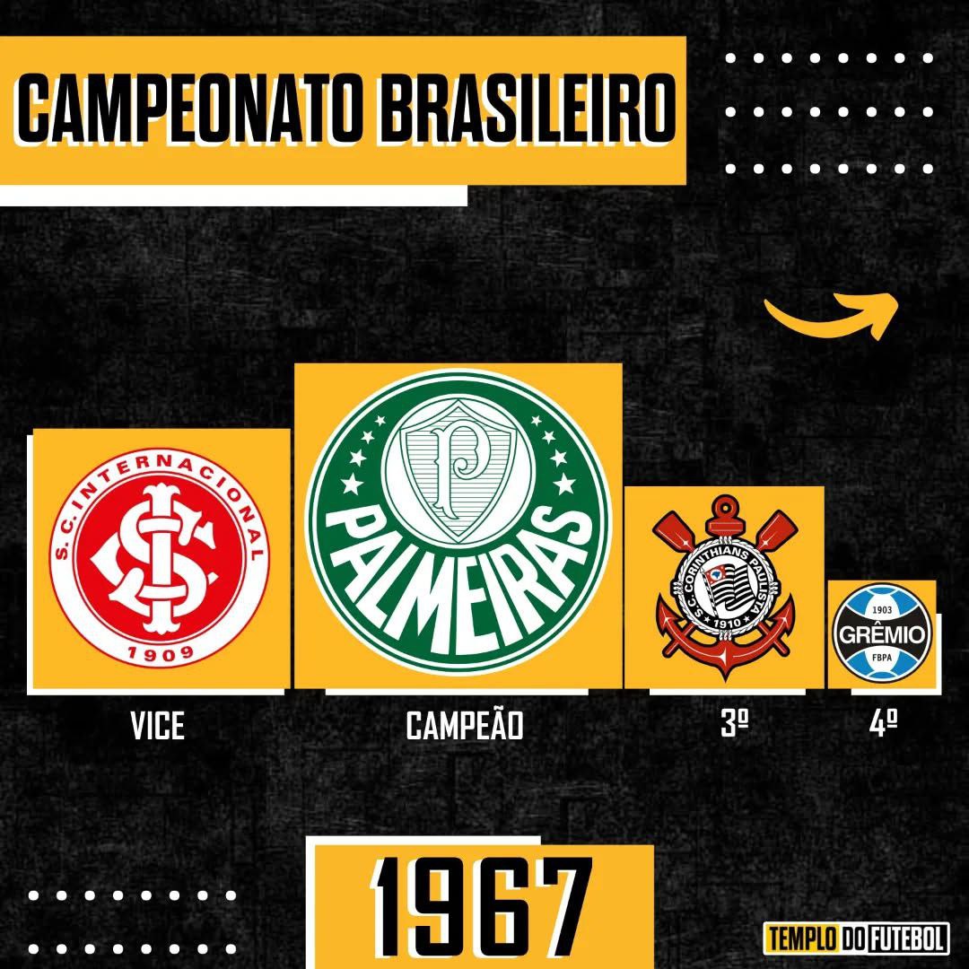 Ну а в 1967 году «Палмейрас» выиграл оба чемпионата. В Taça Brasil они выбили «Гремио» и «Наутико». В TRGP (Турнир Роберто Гомеса Педросы) они прошли квалификацию в финальную пульку из четырех команд после 14 матчей (круговая система) и стали чемпионами, опередив «Интернасьонал», «Коринтианс» и «Гремио».