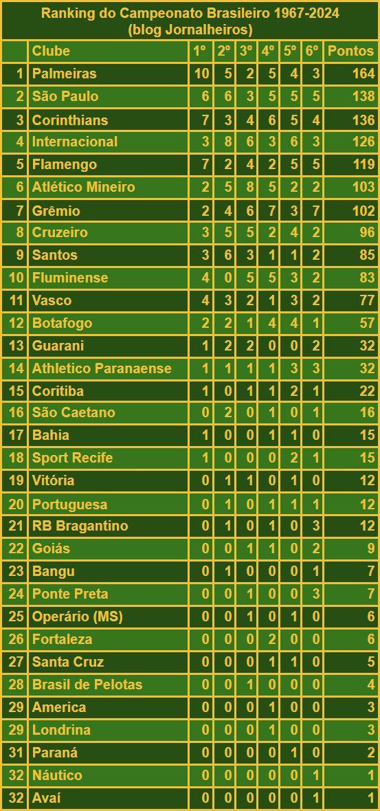 Полные кампании чемпионов Taça Brasil можно посмотреть здесь , а кампании чемпионов турнира Роберто Гомеса Педросы здесь .