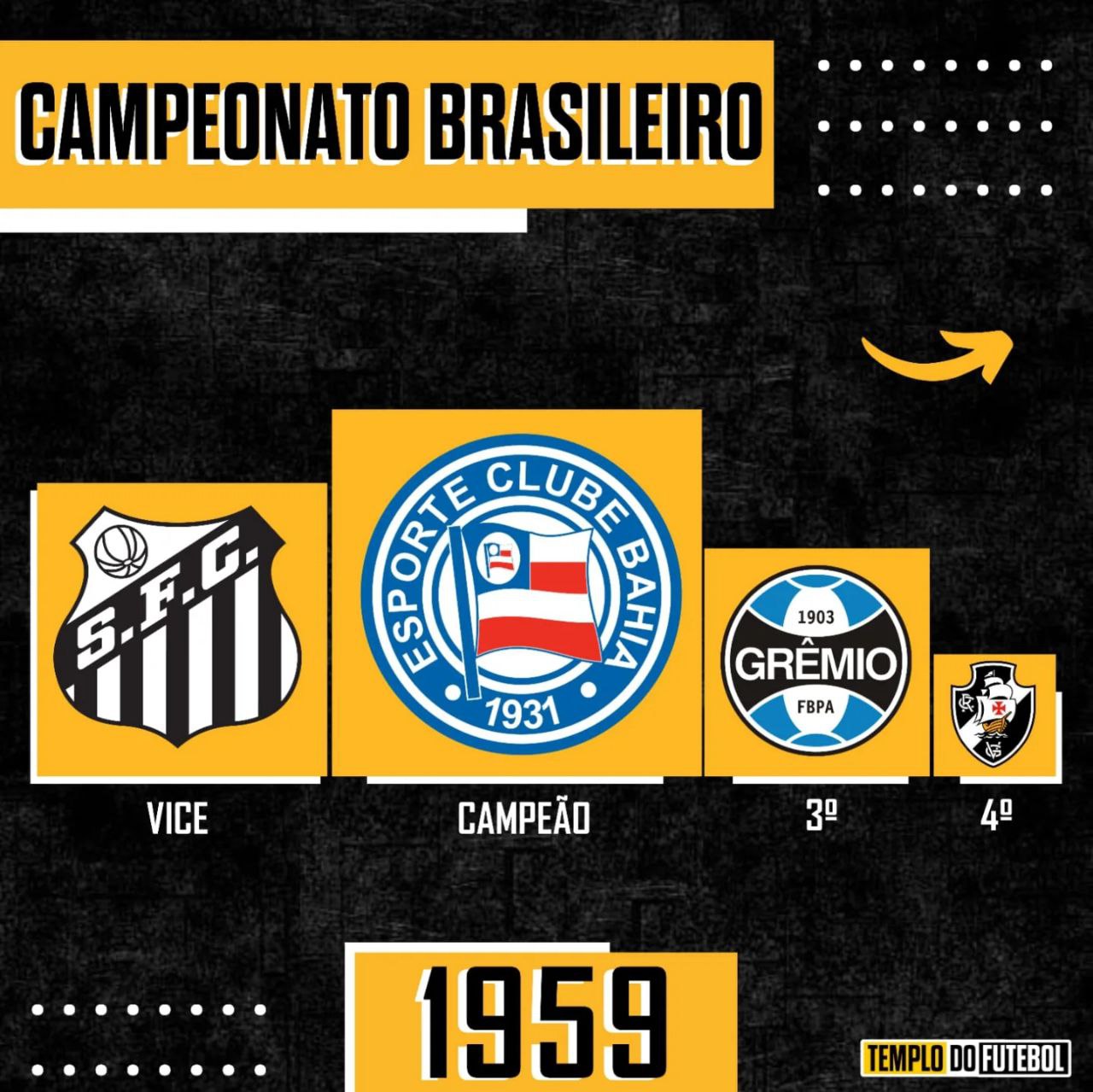 Итак, формально первым чемпионом Бразилии считается «Баия», поднявшая кубок после 14 игр. В первом раунде, называемом Северо-восточной зоной, они обыграли «ССА», а затем «Сеару». Впоследствии они победили «Спорт» в финале Северной зоны, выйдя в полуфинал. В этом раунде «Баия» выбила «Васко», обеспечив себе место в финале. В серии из трех матчей «Баия» победила мощный «Сантос» Пеле и завоевала трофей.