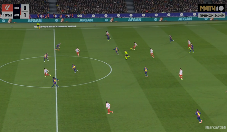 «Барса» была лучше физически: перебегали, перетерпели. Особенно выделяется Мартин: перекусывал выпады «Атлетико», адаптировался к рывкам Джулиано – вообще-то, важный атакующий инструмент команды Симеоне. Жерар был чуть ли не лучшим у «Барсы», рядом только Рафинья. Бразилец сначала оставался в высокой позиции, но потом адаптировался и начал чаще искать мяч в глубине. Это запутало «Атлетико».