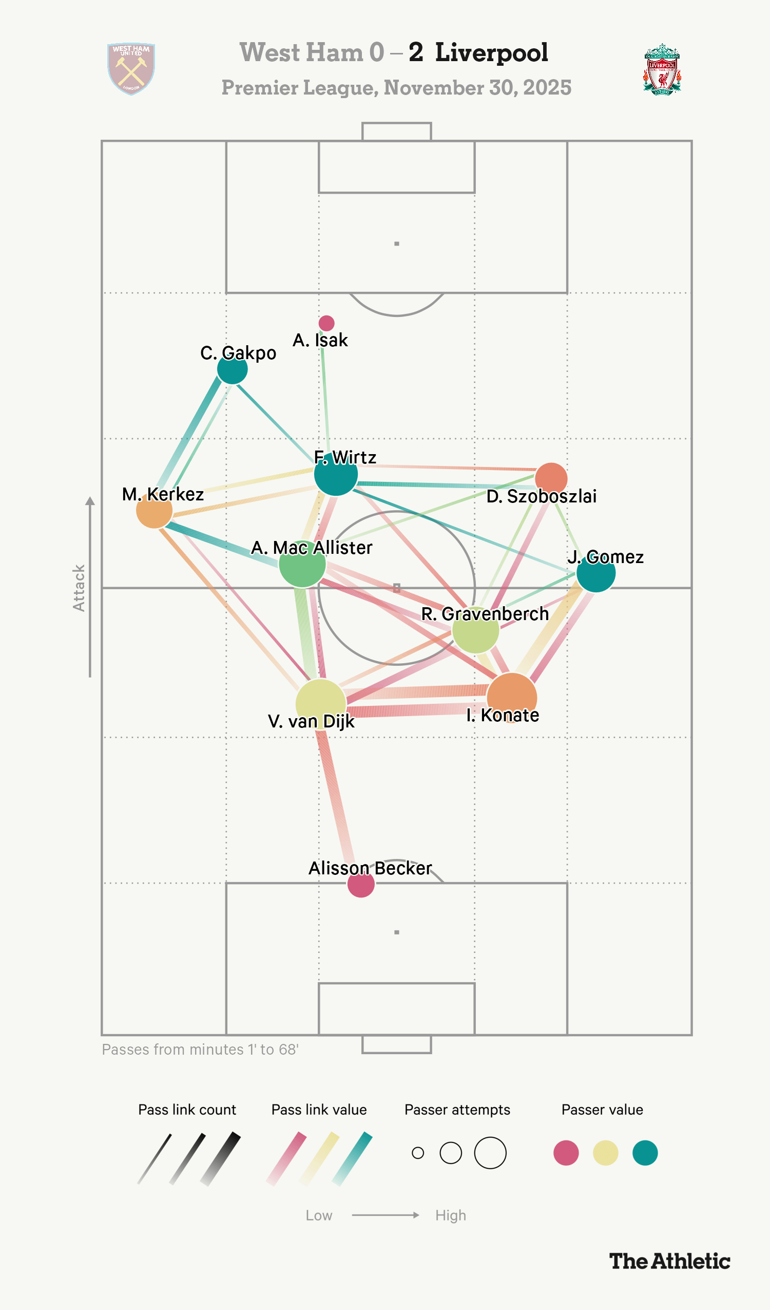 Хотя не следует забывать о плохой игре «Вест Хэма», «Ливерпуль» чувствовал себя более сбалансированным и собранным, чем на протяжении большей части сезона. Собослаи, который до сих пор был игроком сезона, провел относительно спокойную игру по своим меркам, но это произошло потому, что его роль позволила Вирцу, в частности, преуспеть.