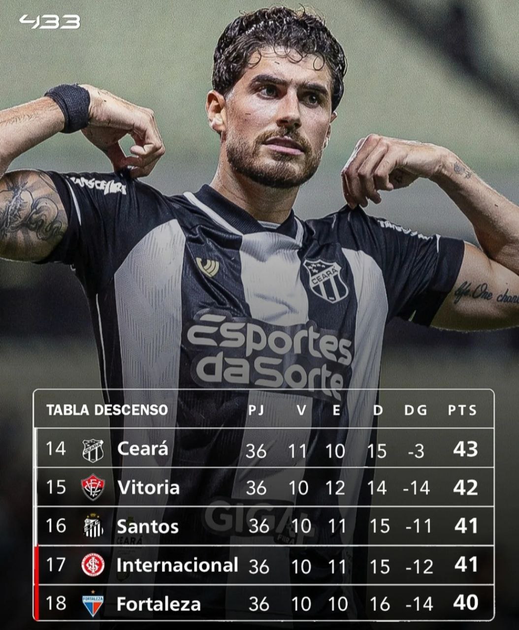 Рухнула «Сеара», плюс календарь врагу не пожелаешь, но все же слабо верю что «Интер» и «Форталеза» их обойдут. Впрочем Возао надо было раньше суетиться и не доводить до сегодняшнего положения дел.