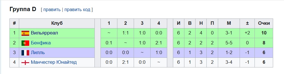 Две победы в группе «Вильярреал» смог добыть во встречах с «Бенфикой» и «Лиллем», причем португальский гегемон был обыгран в Лиссабоне, а призер Лиги 1 – на «Эстадио Керамика». Оба раза был зафиксирован счет 1:0, и лишь «Бенфике» удалось распечатать ворота дерзкого дебютанта; в ответной встрече была зафиксирована ничья 1:1. Чемпион Португалии в итоге занял 2-е место, что позволило ему выйти в плей-офф, а вот «Лилль» смог добыть путевку в Кубок УЕФА, благодаря победе над МЮ! И это при том, что разница мячей у них была одинаковой, но тут сыграл свою роль фактор личных встреч, принесший большую выгоду представителям чемпионата Франции. Манкунианцы, ведомые сэром Алексом, смогли насолить только «Бенфике», однако этого оказалось недостаточно; рекордсмены АПЛ с позором тогда покинули ЛЧ. Но тем не менее, Глейзеры сочли нужным сохранить наставника на его посту. Спустя 2 года МЮ возьмет свою 3-ий и последний Кубок Чемпионов, а в 2013-м Фергюсон покинет Красных Дьяволов после 27 лет пребывания у руля.