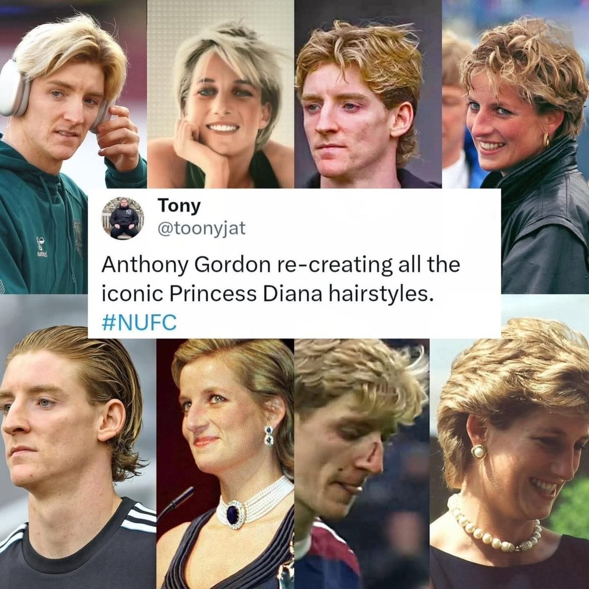 Поразительно наблюдательный англичанин заметил, что хавбек «Ньюкасла» Энтони Гордон копирует стиль принцессы Дианы.