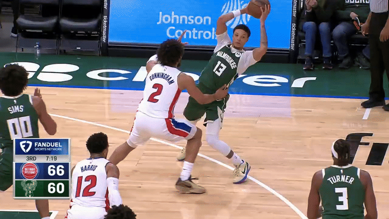 В третьей четверти он получил мяч на дуге и пошел в нехарактерный для себя проход. Под кольцом ждал Стюарт.
