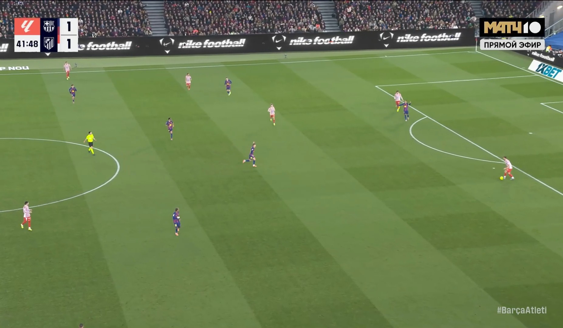 В атаке у команды Симеоне почти ничего не получалось по нескольким причинам: Мартин, Эрик и Педри очень круто разбивали атаки «Атлетико»; 4 офсайда и почти случился пятый в момент с голом Баены (ещё будет упомянут); уверенная игра Жоана Гарсии и на выходах, и ногами, которая даёт много плюсов для розыгрыша мяча «Барсы»; почти все атакующие игроки «мадридцев» индивидуально провели плохой матч, что ещё более усложняло игру.