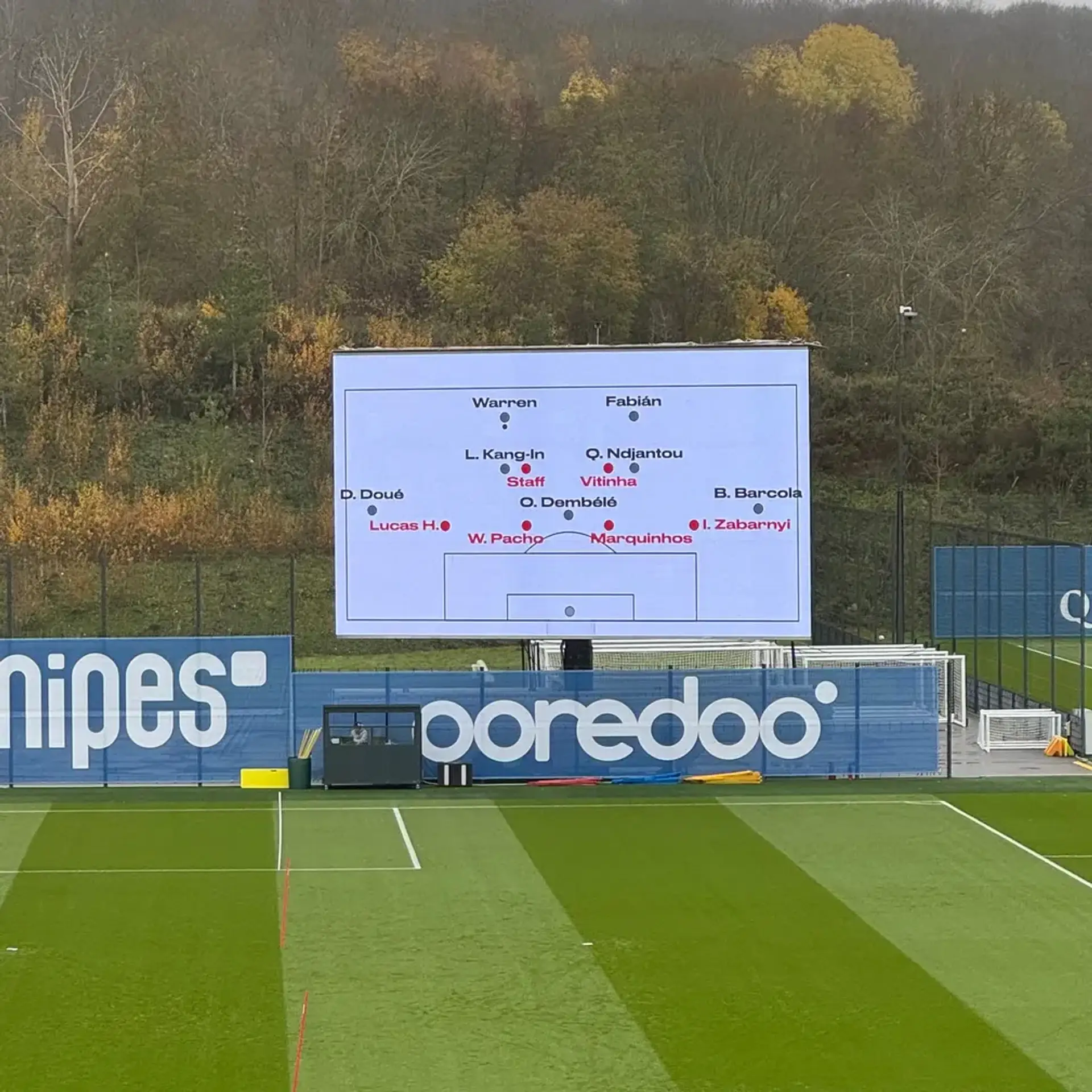 На тренировочной базе «ПСЖ» заметили странную картину: на огромном экране открыто показывали инструкции и полный состав команды, доступный взгляду любого, кто проходил мимо. Это не ошибка и не шоу для болельщиков — все выглядело намеренно.